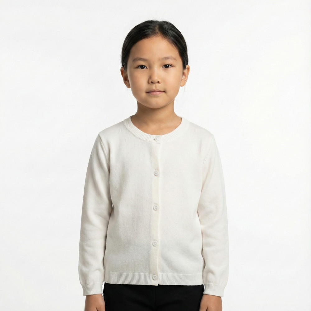 Ақ түсті классикалық балалар кардиганы — балаңыздың гардеробындағы таптырмас негізгі киім. Жемпір жұмсақ әрі ауа өткізетін мақтадан (хлопок) жасалған, бұл күні бойы жайлылықты қамтамасыз етеді және баланың нәзік терісін тітіркендірмейді.
