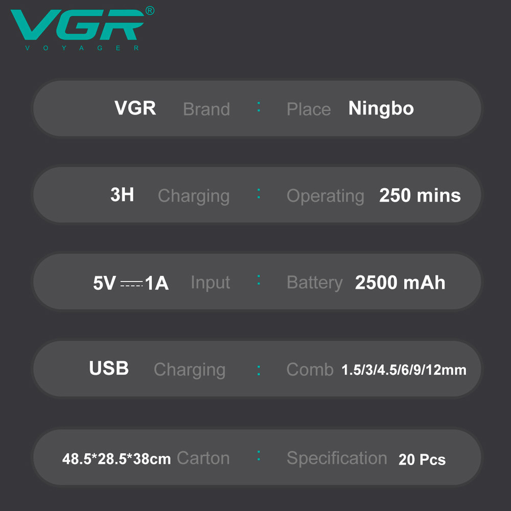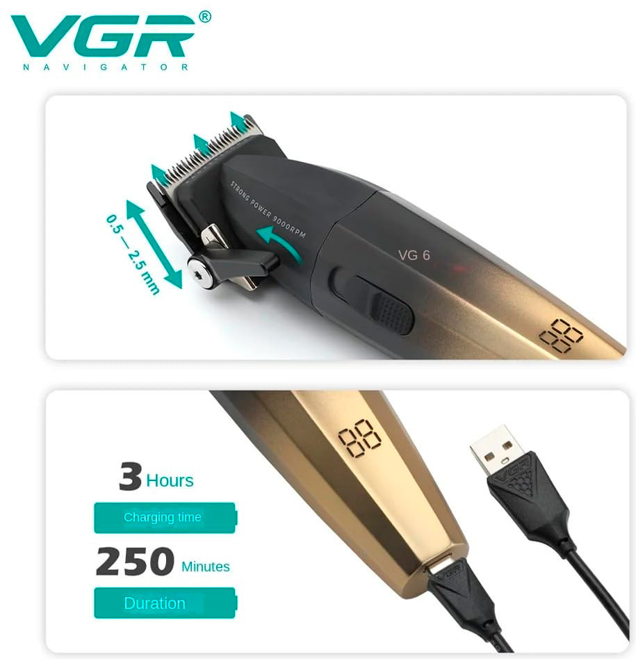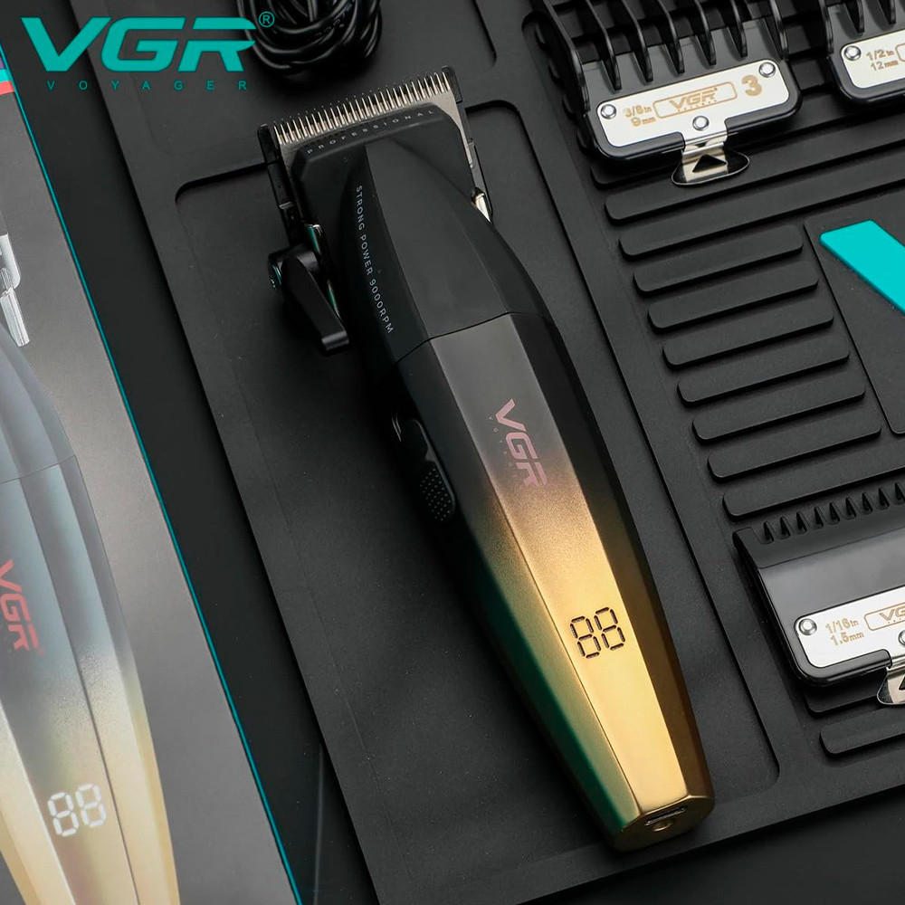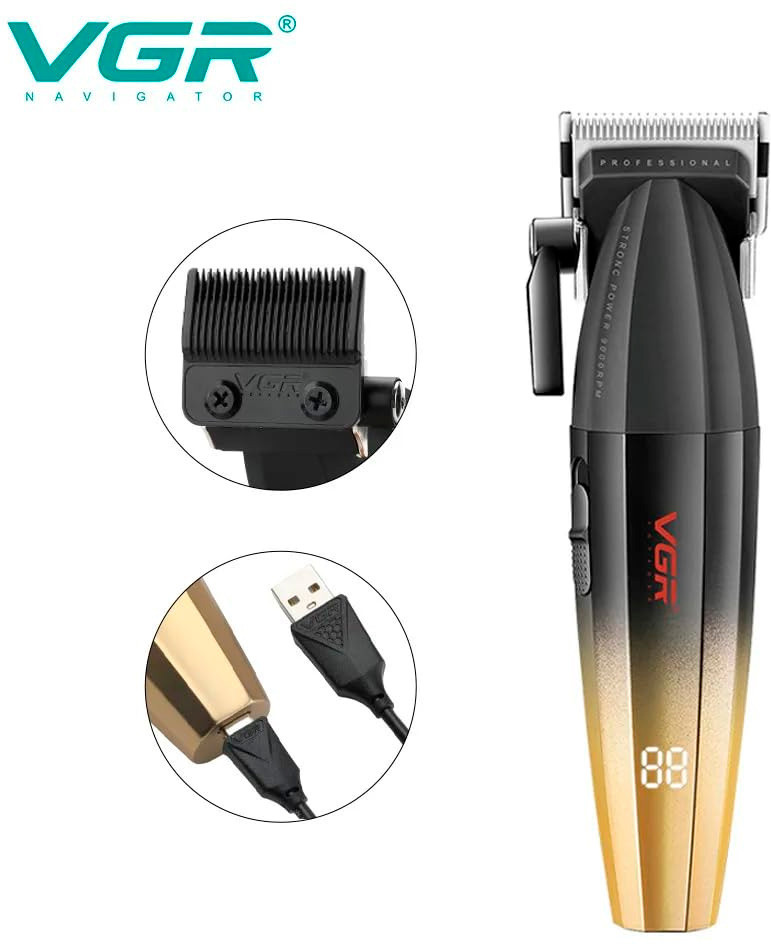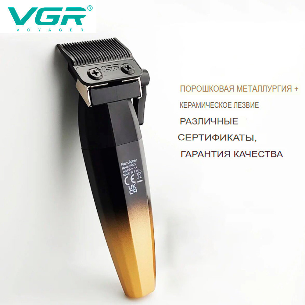 VGR V-003 Gold — это стильная и производительная машинка для стрижки, которая идеально подходит как для профессионального использования в барбершопе, так и для домашнего ухода. Оснащенная современными технологиями, она обеспечивает комфортную работу, точный срез и сохранность формы без лишних усилий.