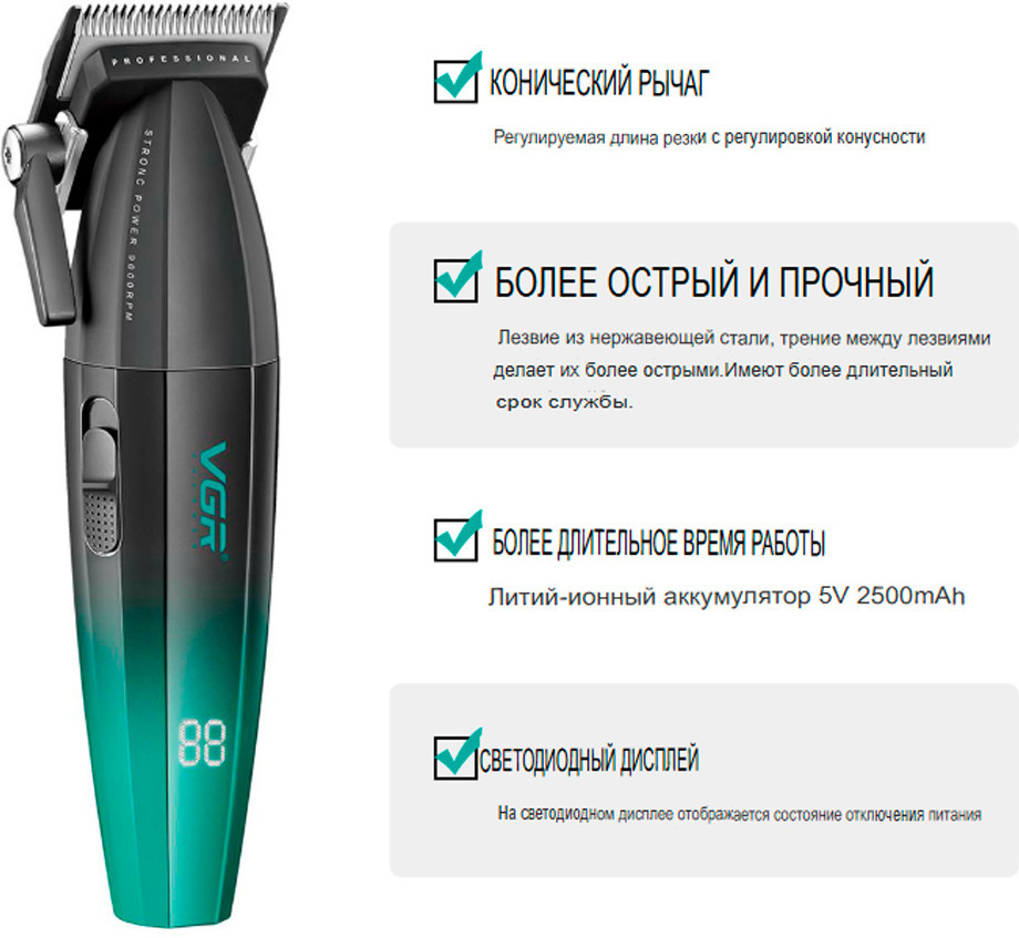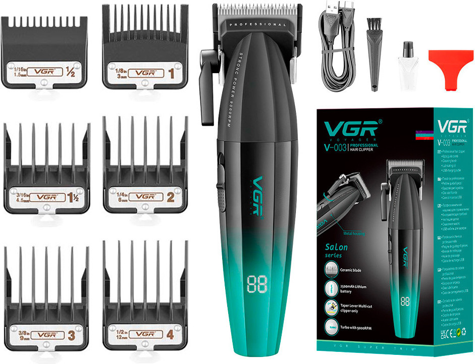 VGR V-003 — это стильная и производительная машинка для стрижки, которая идеально подходит как для профессионального использования в барбершопе, так и для домашнего ухода. Оснащенная современными технологиями, она обеспечивает комфортную работу, точный срез и сохранность формы без лишних усилий.