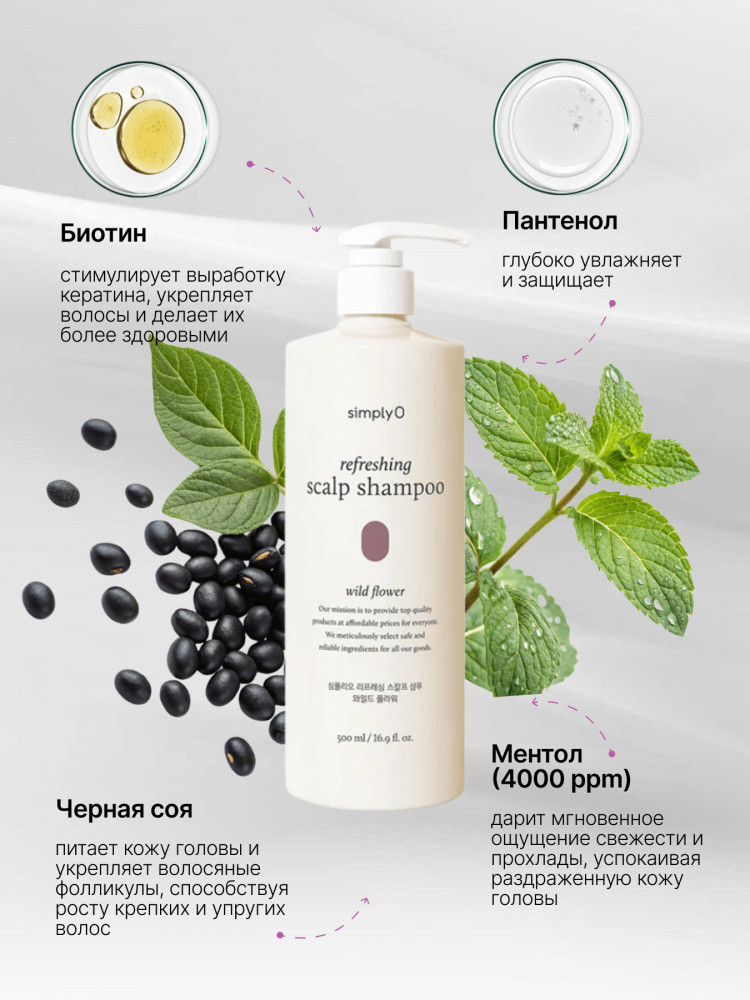 SimplyO Шампунь против перхоти и зуда «Refreshing Scalp Shampoo Wild Flower»