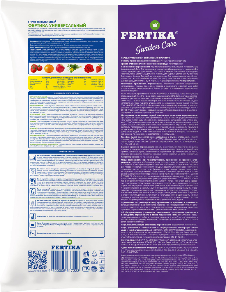 Fertika Грунт универсальныйВ данный момент этот товар отсутствует в продаже. Возможно, у нас найдется аналогичный или похожий товар здесь. Грунт полностью готов к применению. Обладает оптимальными агрофизическими свойствами, обеспечивает отличную приживаемость и развитие растительных культур. Норма применения определяется самостоятельно и зависит от размера корневой системы выращиваемой культуры. Грунт питательный содержит в своей основе смесь верхового и низинного торфа, добываемого в Северо-Западном регионе России, в благоприятном соотношении для растений с добавлением компонентов для улучшения физико-агрохимических свойств: глины, перлита, доломитовой муки, удобрения PG-MIX. В грунте отсутствуют болезнетворные микроорганизмы и вредители растительных культур. |