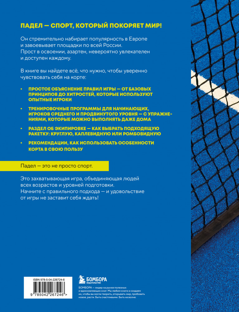💳 Оплатить за товар можно при получении 🇰🇿 Есть бесплатная доставка по Казахстану от 1 дня 🎁 Копите бонусы с каждой покупки Серия: Играй с нуля. Иллюстрированные самоучители Падел — спорт, который покоряет мир! Он стремительно набирает популярность в Европе и завоевывает площадки по всей России. Прост в освоении, азартен, невероятно увлекателен и доступен каждому. В книге вы найдете всё, что нужно, чтобы уверенно чувствовать себя на корте: |