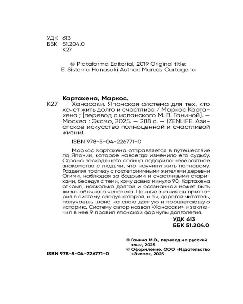 💳 Оплатить за товар можно при получении 🇰🇿 Есть бесплатная доставка по Казахстану от 1 дня 🎁 Копите бонусы с каждой покупки Серия: ZENLIFE. Азиатское искусство полноценной и счастливой жизни Всего 30 лет назад в Японии насчитывалась сотня долгожителей. Сегодня — их почти сто тысяч! Маркос Картахена исследовал этот феномен долголетия, анализируя пищевые привычки, физическую активность, культурные особенности японцев. Результатом стала система «Ханасаки». Правильная забота о здоровье, связь с природой, минимализм, наполняющие отношения с окружающими, система ценностей — ключевые столпы осознанной жизни, которые легли в основу методики автора. |