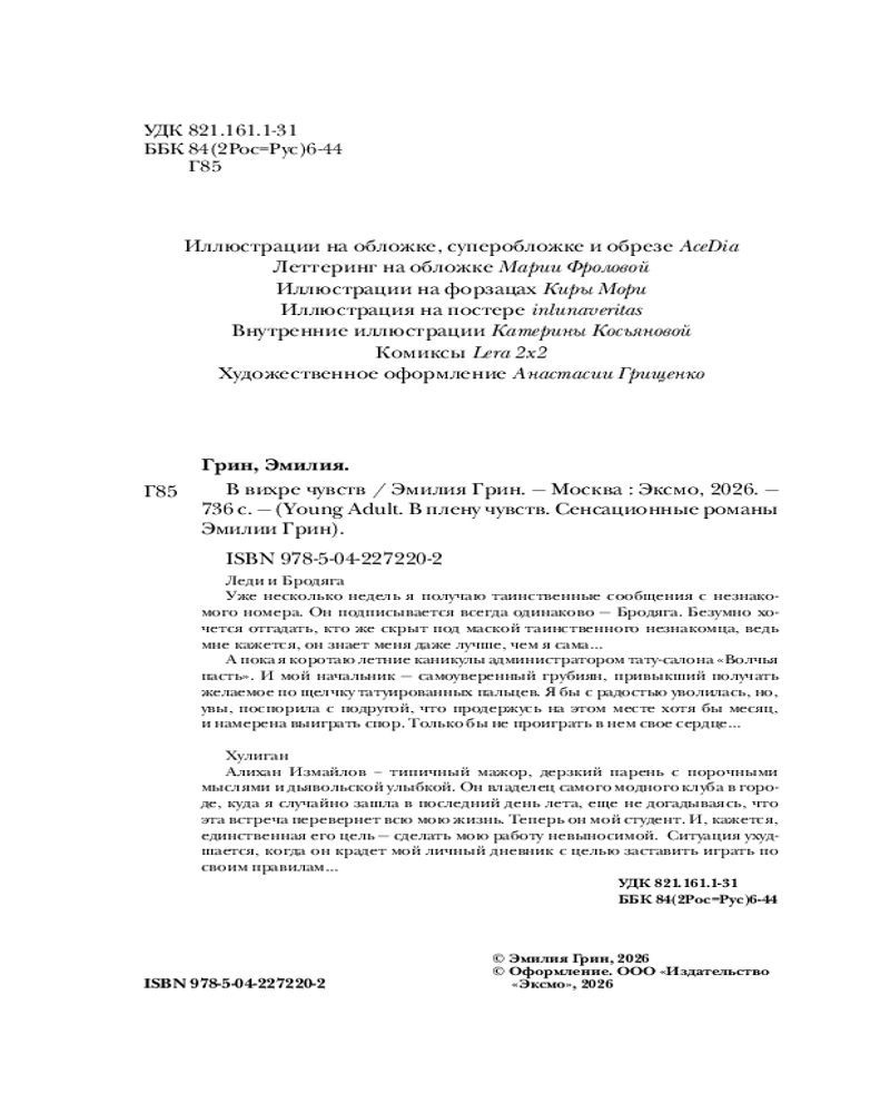 Серия: Young Adult. В плену чувств. Сенсационные романы Эмилии Грин Новинка — коллекционное издание с двумя популярными романами Эмилии Грин под одной обложкой! Обе истории — о страсти, противостоянии и неожиданной близости, где герои балансируют на грани любви и ненависти. «Хулиган» — роман о взаимоотношениях преподавательницы и своенравного студента, забравшего ее личный дневник. Книга «Леди и Бродяга» расскажет о девушке, проникшейся чувствами к анониму, который... оказывается ее ненавистным боссом.