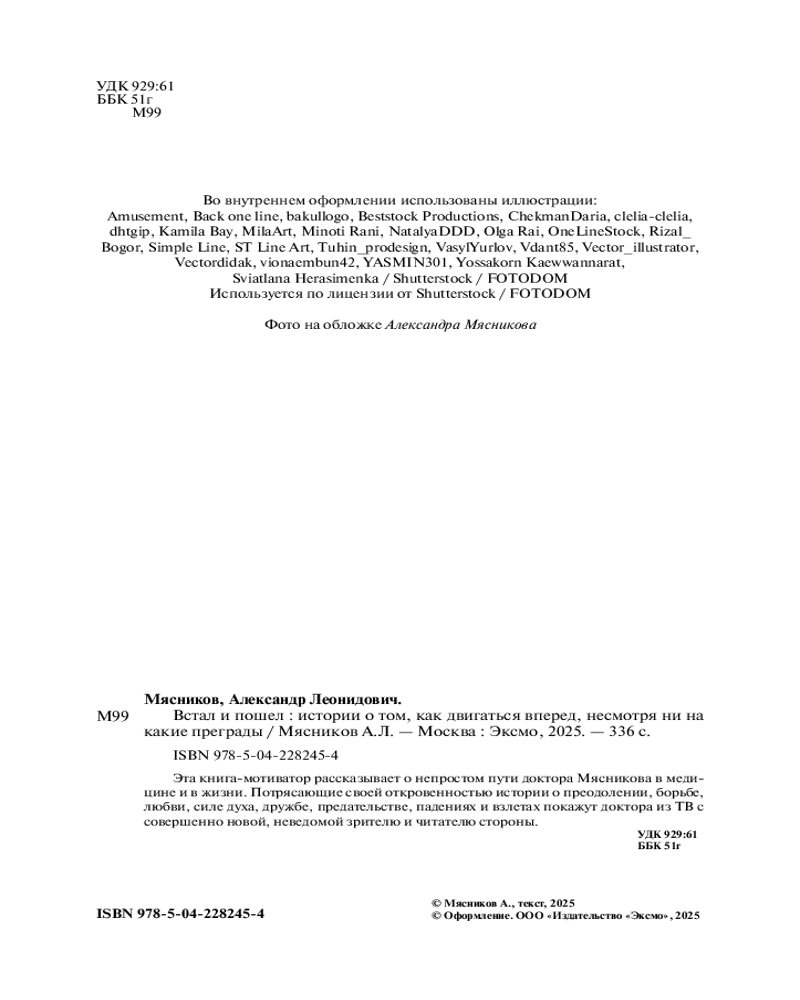 💳 Оплатить за товар можно при получении 🇰🇿 Есть бесплатная доставка по Казахстану от 1 дня 🎁 Копите бонусы с каждой покупки Серия: О самом главном с доктором Мясниковым Что двигает человеком? Страх и жадность? Боль и надежда? Вера и любовь? Тут можно нафантазировать множество вариантов, суть одна: все они неверны, как бы броско они ни звучали. Жизнь течет по установленному не нами распорядку. А уж какие шпоры нам дают на разных этапах — это индивидуально. Но это, конечно, и страх, и жадность, и боль, и надежда, и вера, и любовь, и так далее, и так далее. Новая книга известного телеведущего доктора Мясникова рассказывает о самых сокровенных, самых удивительных событиях из жизни автора. О событиях, которые закалили характер, научили всегда идти вперед и быть верным себе и своей мечте. |
