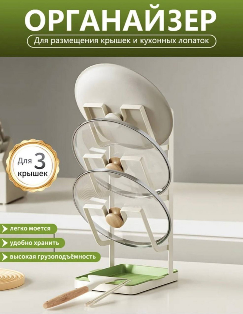 Порядок на кухне начинается с мелочей — именно тех, которые обычно создают больше всего хаоса. Крышки от кастрюль, сковородок и кухонные лопатки постоянно лежат «не там», занимают место и мешают готовить. Этот настольный органайзер решает проблему сразу и надолго.