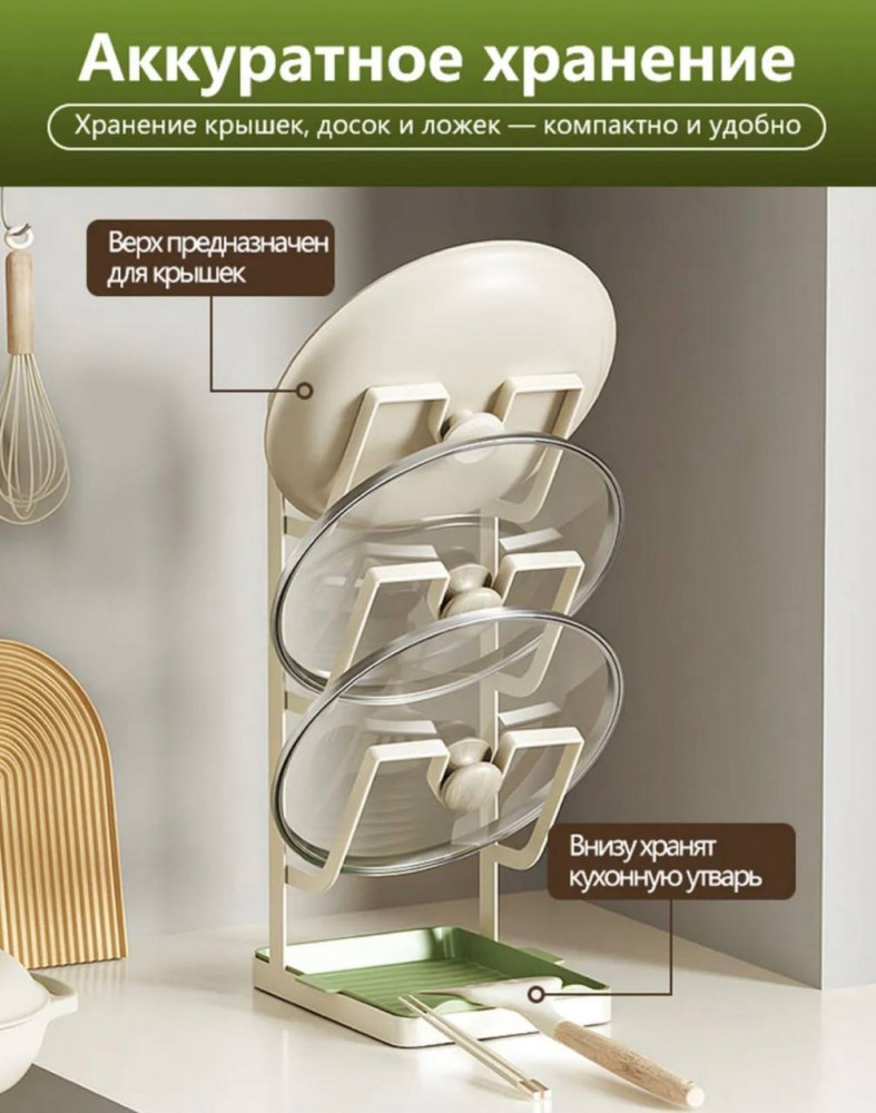 | Настольный держатель для крышек и кухонных принадлежностей с поддоном+60 (бонусов)