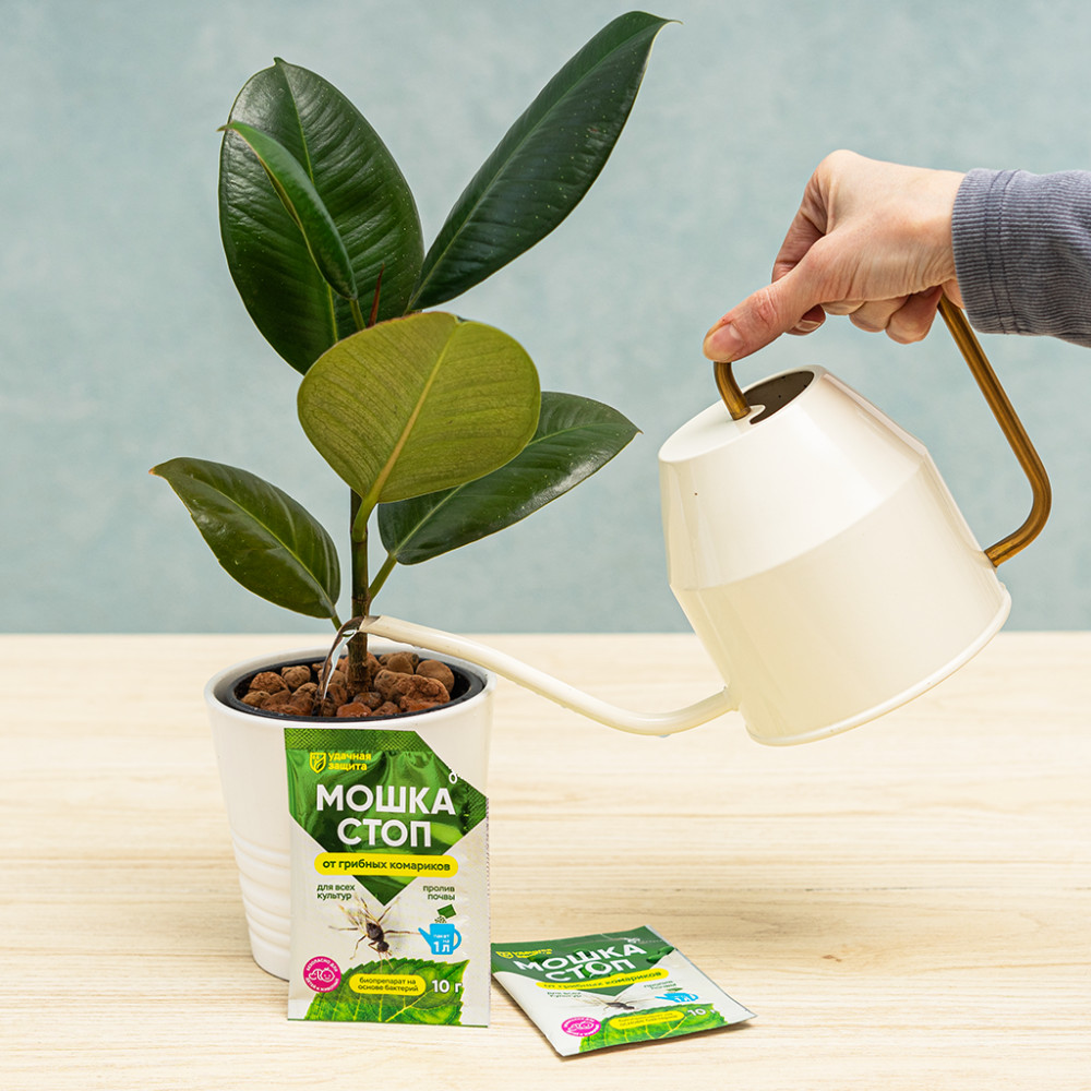 Эффективный бактериальный препарат предназначен для защиты растений от грибных комариков (сциарид) и почвенных мушек. Применяется на рассаде цветочных, овощных культур и комнатных растениях. Надоели мелкие черные мушки, роящиеся над горшками с любимой рассадой или комнатными цветами? Их личинки в почве угрожают корням молодых растений? Знакомая проблема для многих цветоводов и огородников. Не отчаивайтесь! Представляем вам «Мошка стоп — Удачная защита» — современное, высокоэффективное и, главное, безопасное решение на основе полезных бактерий! «Мошка стоп — Удачная защита» — это инновационный бактериальный инсектицид, специально разработанный для борьбы с личинками: грибных комариков (сциарид) и почвенных мушек.