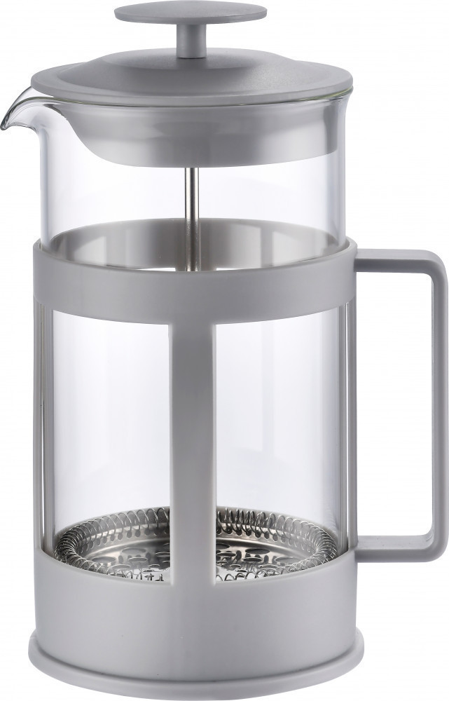 Френч-пресс GRANS AG 813-1000 -PL (цвет: гранит) поможет приготовить качественный и вкусный напиток благодаря своей конструкции, в которой все элементы плотно прилегают друг к другу, материал колбы изготовлен из термостойкого боросиликатного стекла, выдерживающего температуру от −15℃ до +150℃. Подстаканник, крышка и ручка сделаны из высококачественного (ПП) пластика с низкой теплопроводностью, не имеющего постороннего запаха. Поршень изготовлен из нержавеющей стали.