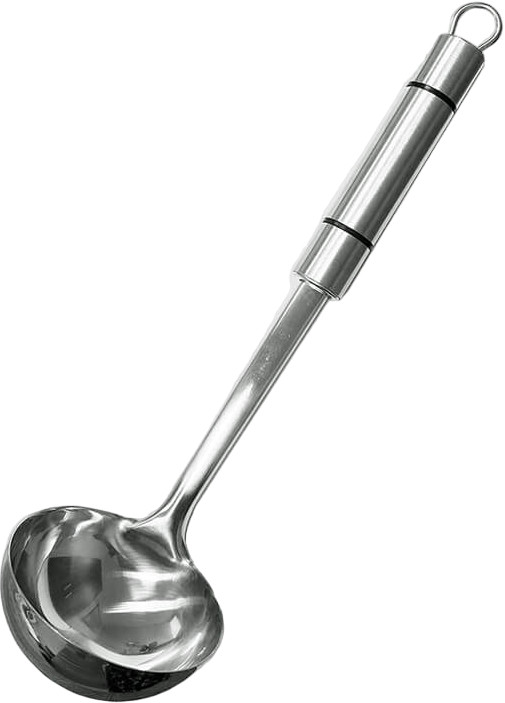 Feel Maestro ПоловникВ данный момент этот товар отсутствует в продаже. Возможно, у нас найдется аналогичный или похожий товар здесь. Половник Maestro изготовлен из высококачественной нержавеющей стали марки 18/8. Марка стали 18\8 содержит 18% хрома и 8% никеля, обладает более высокой упругостью (лучше пружинит) по сравнению со сталью 18/10. Ручка с прорезиненными полосами. Все это гарантирует удобство в использовании и долгий срок службы. Поварёшка предназначена для разливания жидкой пищи. Длина рукоятки с петелькой: 27 см, диаметр черпака: 9 см. |