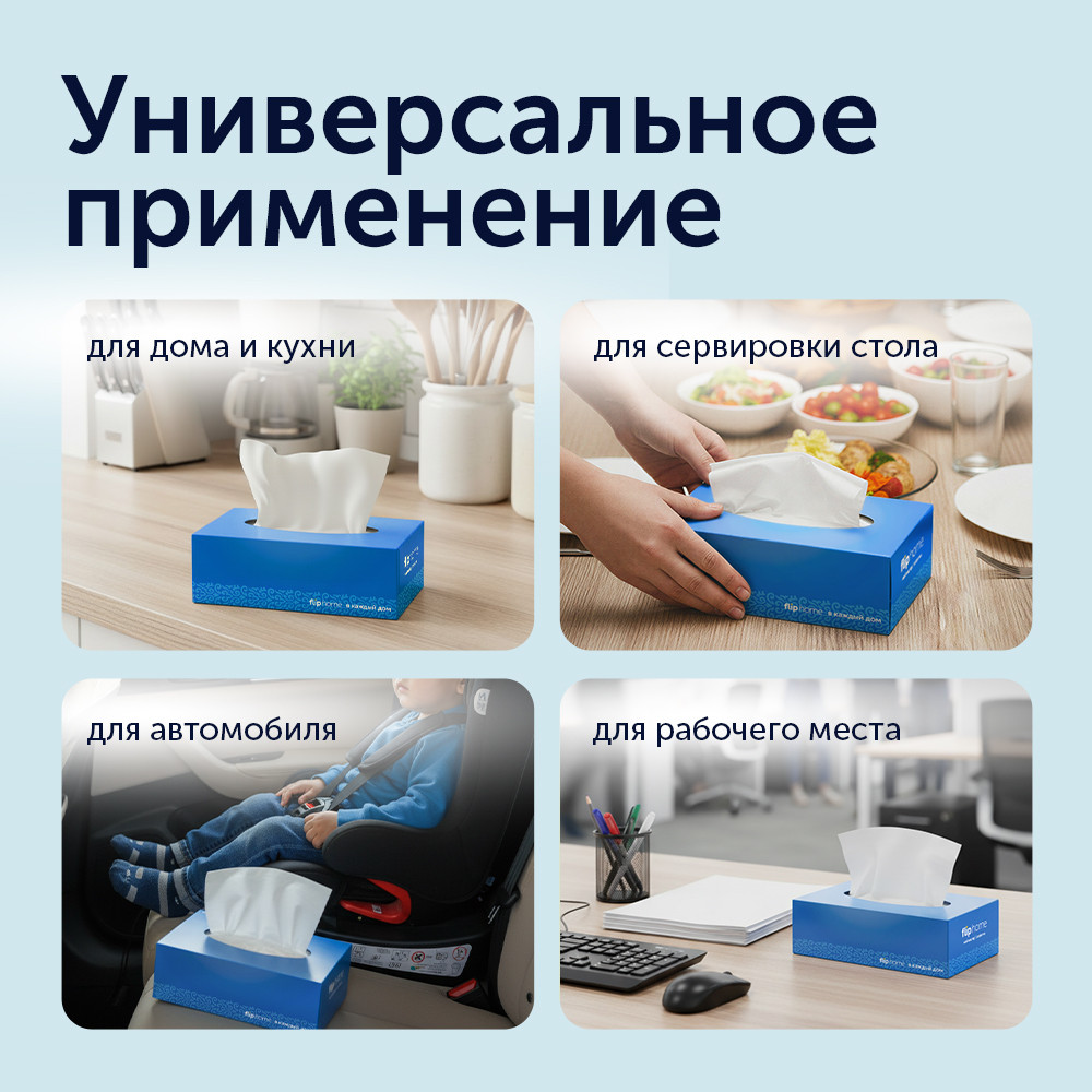 Flip Home Салфетки бумажные в коробке-25% +18 плотные удобная коробка не размокают