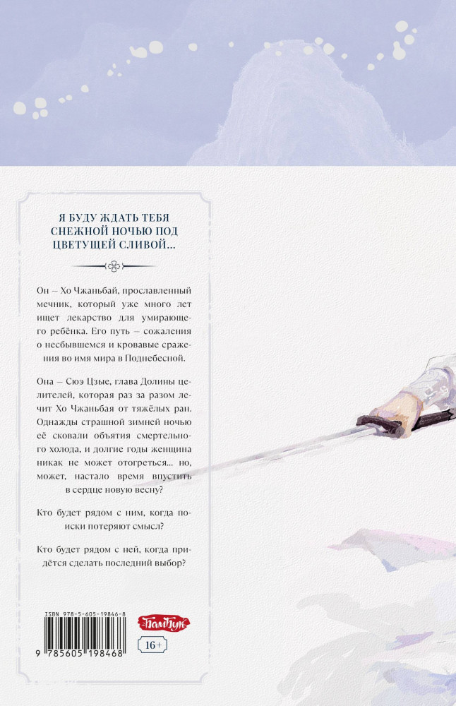 💳 Оплатить за товар можно при получении 🇰🇿 Есть бесплатная доставка по Казахстану от 1 дня 🎁 Копите бонусы с каждой покупки Серия: Комильфо. Китайские романы и маньхуа Он — Хо Чжаньбай, прославленный мечник, который уже много лет ищет лекарство для умирающего ребёнка. Его путь — сожаления о несбывшемся и кровавые сражения во имя мира в Поднебесной. Она — Сюэ Цзые, глава Долины целителей, которая раз за разом лечит Хо Чжаньбая от тяжёлых ран. Однажды страшной зимней ночью её сковали объятия смертельного холода, и долгие годы женщина никак не может отогреться... Но, может, настало время впустить в сердце новую весну? Кто будет рядом с ним, когда поиски потеряют смысл? Кто будет рядом с ней, когда придётся делать последний выбор? |