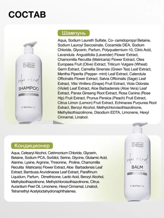 💳 Оплатить за товар можно при получении 🇰🇿 Есть бесплатная доставка по Казахстану от 1 дня 🎁 Копите бонусы с каждой покупки Профессиональный набор для ухода за волосами Tashe включает шампунь с дозатором и бальзам-кондиционер в большом объёме. Дуэт разработан для комплексного очищения, питания и восстановления волос, подходит женщинам и мужчинам независимо от типа и состояния волос. Средства можно использовать как в домашних условиях, так и в салонной практике. |