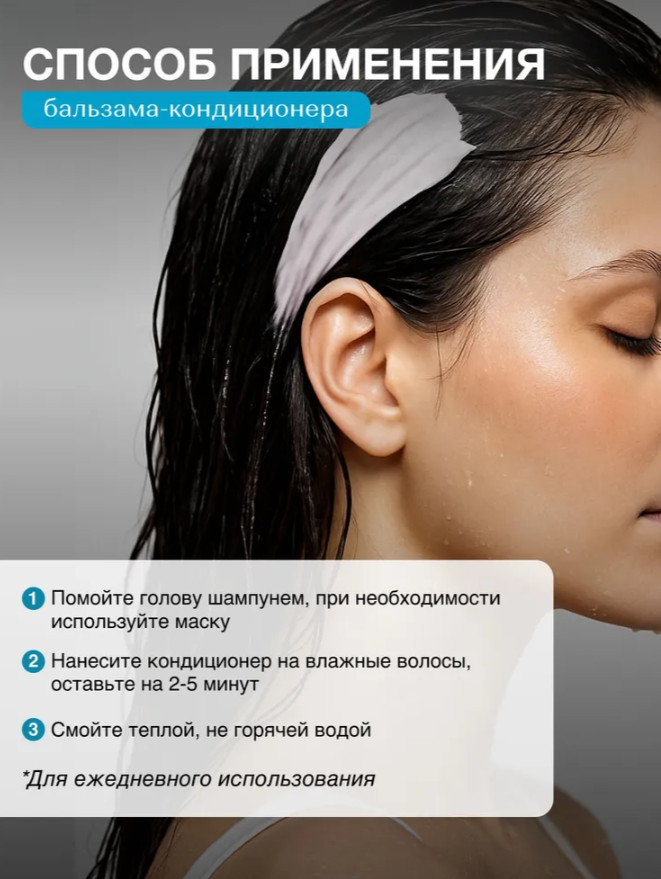 Кондиционер: Aqua; Cetearyl Alcohol; Cetrimonium Chloride; isopropyl palmitate; Hydrolyzed Keratin; Biotin; Hydrolyzed Collagen; Polyquaternium-7; Benzyl alcohol; Methylchloroisothiazolinone; Methylisothiazolinone; Amodimethicone; Camellia Sinensis (Green Tea) Leaf Extract; vitis vinifera (grape) fruit extract; Salix Alba (Willow) Bark Extract; Aloe Barbadensis Leaf Extract; Mentha Piperita (Peppermint) Leaf Extract; Ceteareth-23, Parfum; Citric Acid; EDTA; Hexyl Cinnamaldehyde, Iralia.