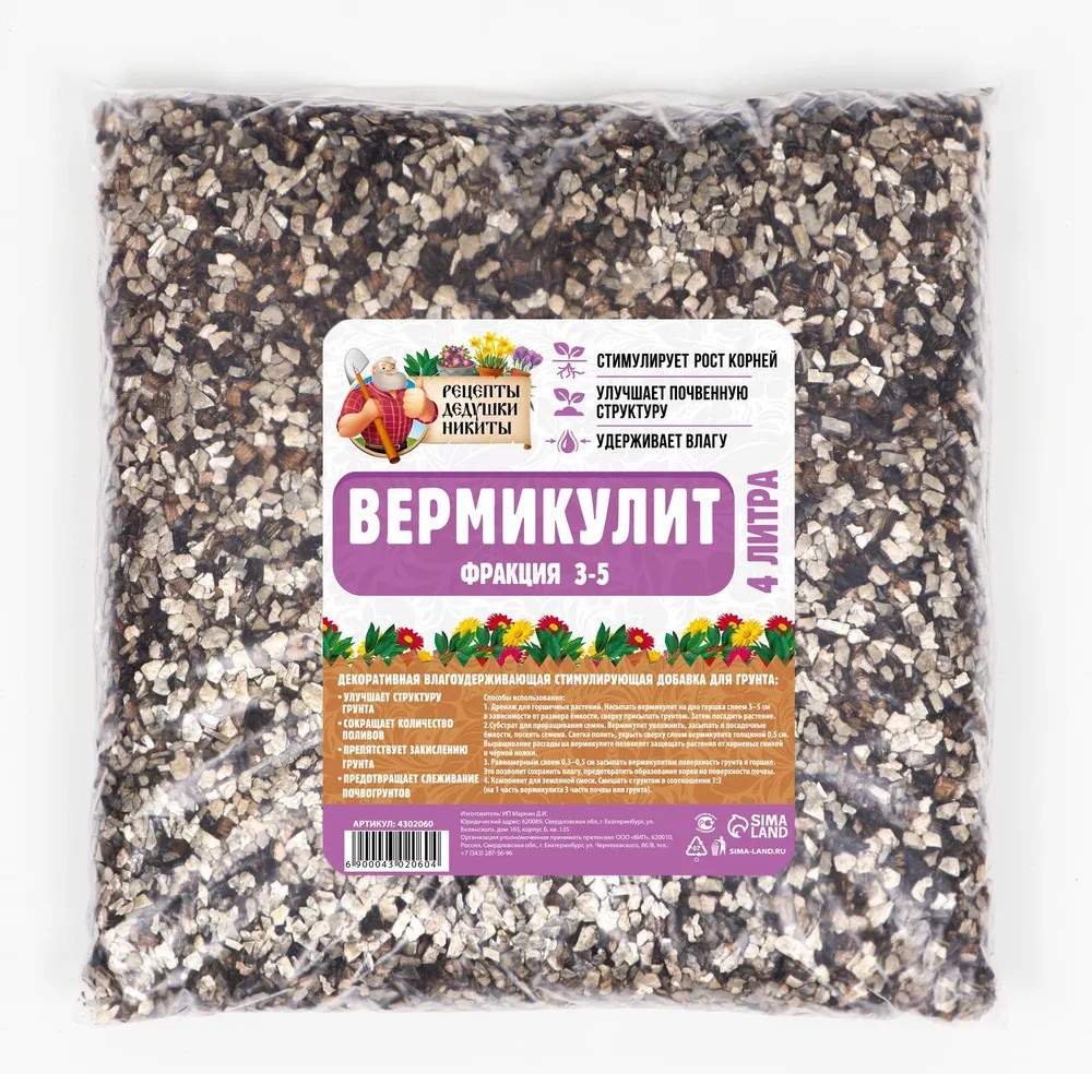 Рецепты дедушки Никиты Вермикулит с фракцией 3-5 ммВ данный момент этот товар отсутствует в продаже. Возможно, у нас найдется аналогичный или похожий товар здесь. Декоративная, аэрирующая, влагоудерживающая добавка для почвы и грунта. А также вермикулит используется в качестве кормовой добавки для крупного рогатого скота и птицы, за счет чего снижается заболеваемость кишечника, улучшается выведение токсинов из организма. Повышается содержание гемоглобина, количество эритроцитов, уровень белка, кальция и фосфата. Вермикулит подходит для всех видов растений и в качестве минерального кормового сорбента для птиц. Для птиц мелких пород, рекомендуется измельчить, перед использованием. |