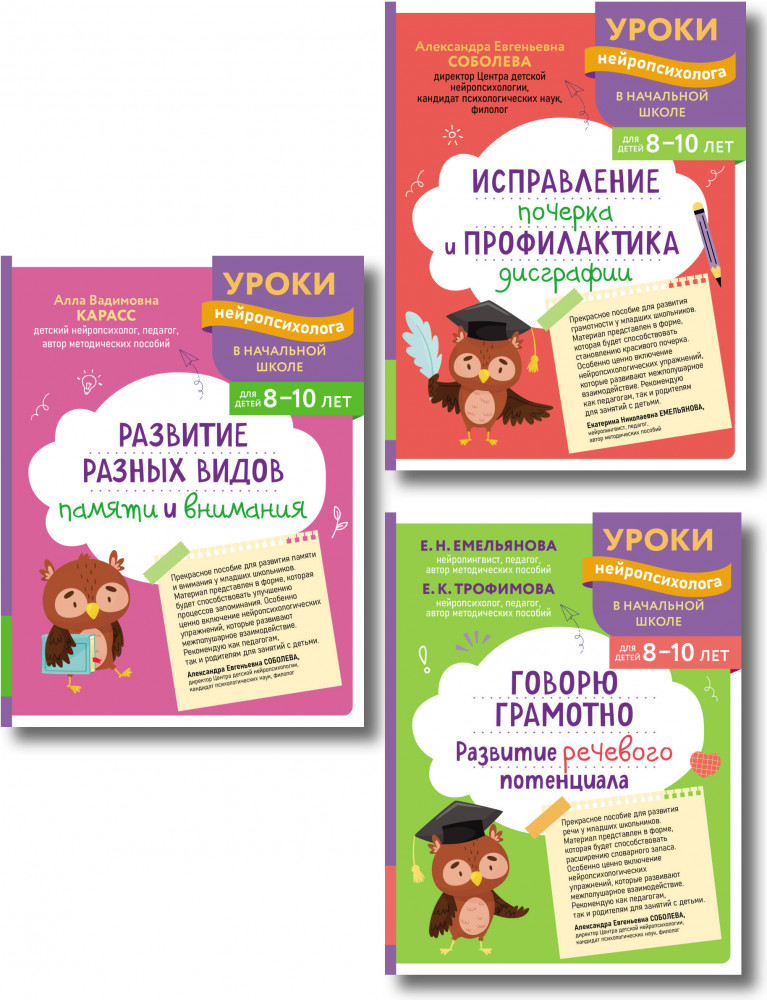 | Развитие разных видов памяти. Исправление почерка и профилактика дисграфии. Говорю грамотно. Развитие речевого потенциала. Комплект из 3 книг Коллектив авторов +99 (бонусов)