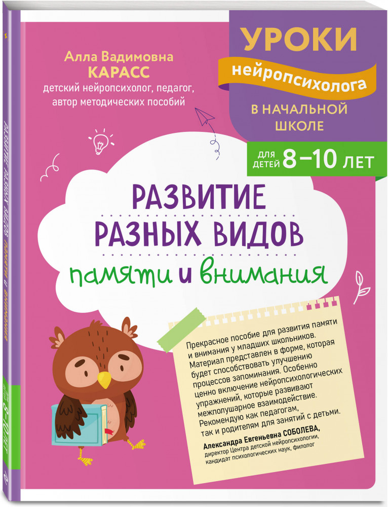 Серия: Уроки нейропсихолога в начальной школе «Развитие внимания и памяти» — увлекательная книга для детей, которая тренирует зрительную и слухоречевую память, улучшает концентрацию и самоконтроль. Герои приглашают ребёнка в морское путешествие, знакомят с секретным языком туземцев, ведут в тайную лабораторию и даже в Зазеркалье. Игровые и творческие задания выстроены в порядке, который активизирует работу мозга и помогает ребёнку без стресса осваивать школьный материал.