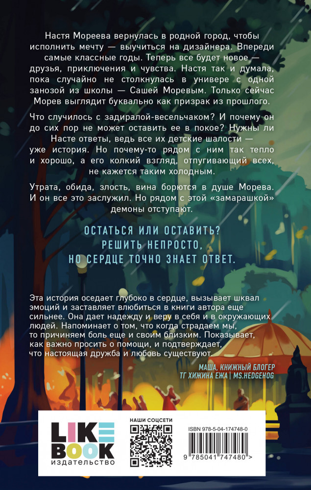 Когда к тебе на улице подходит красавчик и приглашает на бесплатное занятие по танцам, надо соглашаться. Особенно если ты тяжело переживаешь расставание с бывшим, пытаешься не сойти с ума от одиночества и не провалить сессию. Так Риша Мариновна, заручившись поддержкой верной пятерки друзей, оказывается в креативном центре «Малый, зажигай!». И даже не жалеет об этом, ведь тот красавчик преподает здесь, а еще мило флиртует при встречах. Хотя погодите: от счастья рябит в глазах?! Почему красавчиков двое? И почему второй, оказавшийся невыносимым нахалом, так настойчиво уговаривает Ришу стать его партнершей по танцу? Он что, бессмертный?! Здесь вообще-то Риша решает! |
