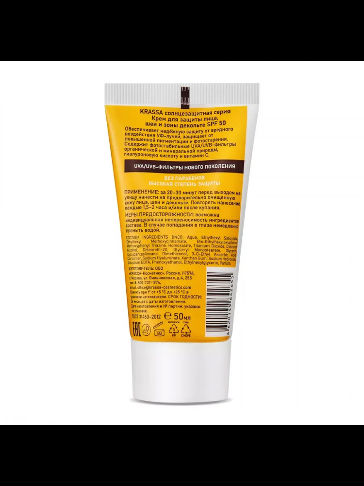Krassa Солнцезащитный крем для лица и зоны декольте SPF 50