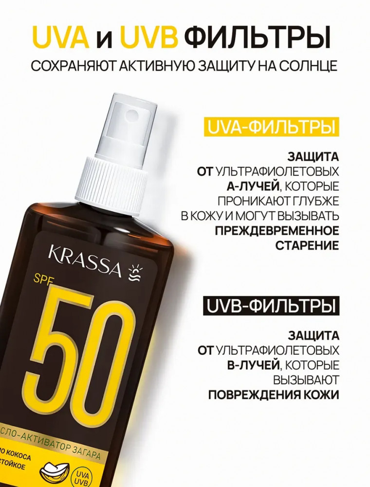 Krassa Масло-активатор загара с маслом кокоса SPF 50-13% +27