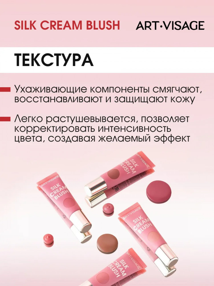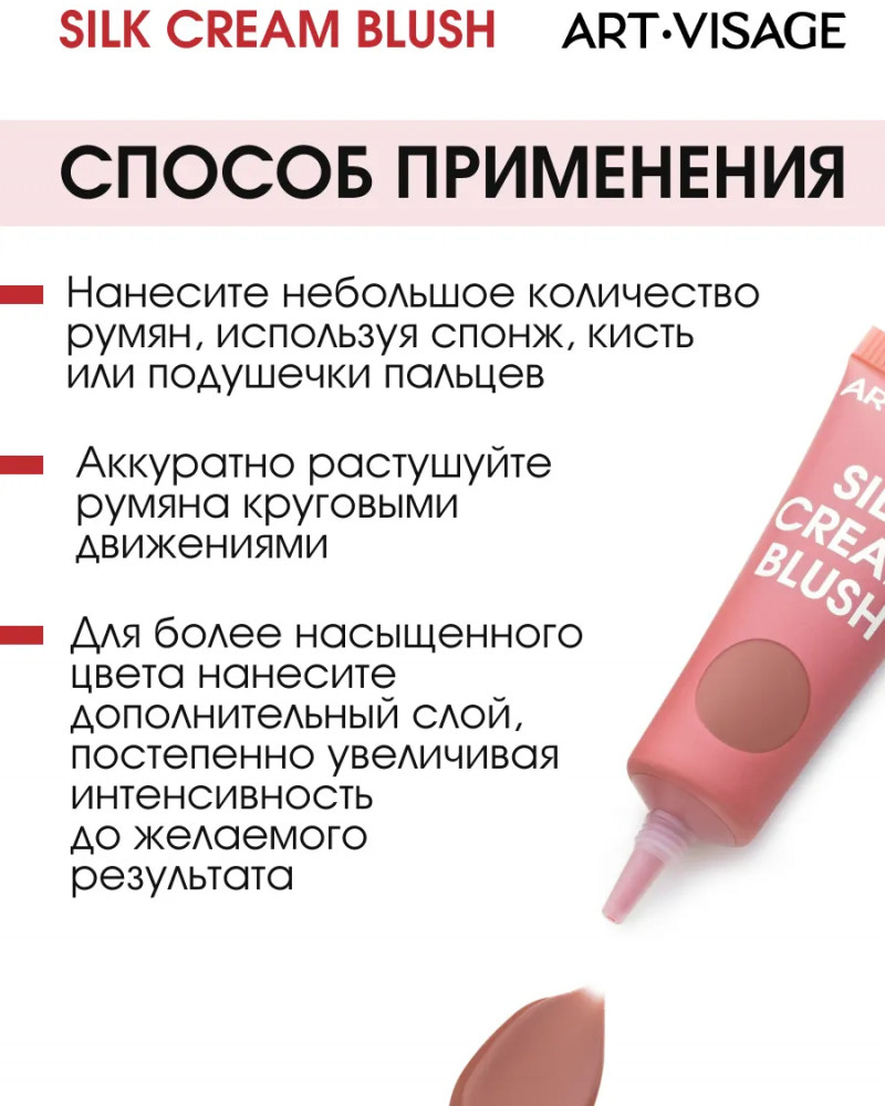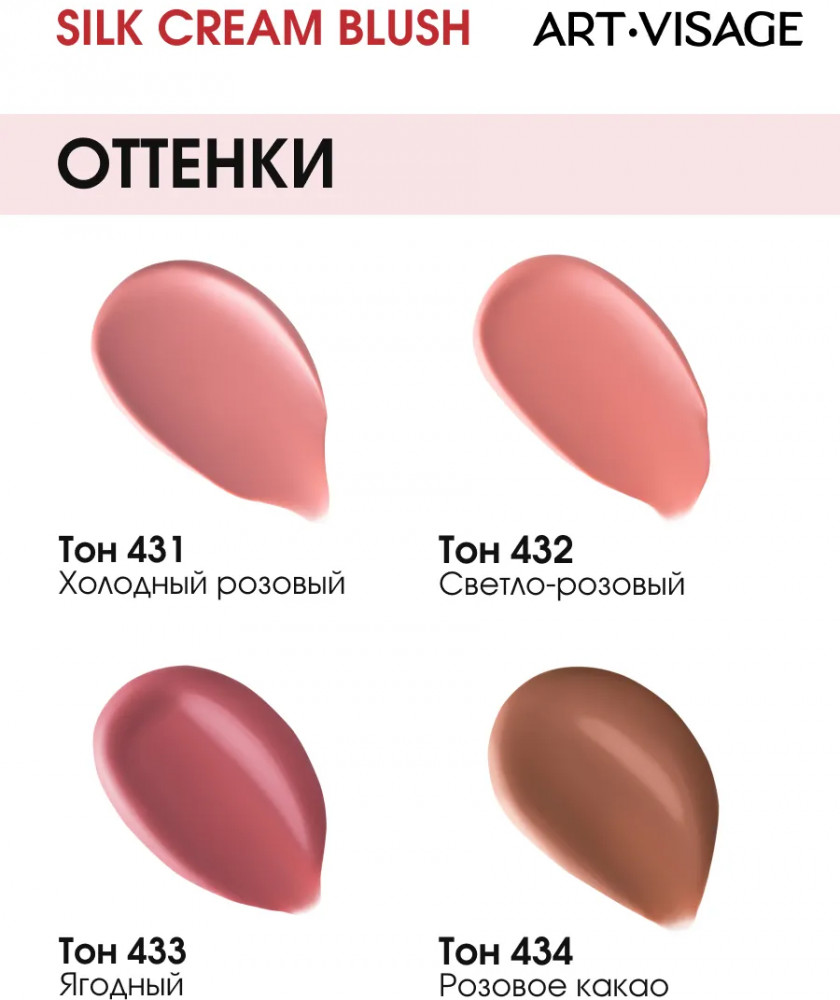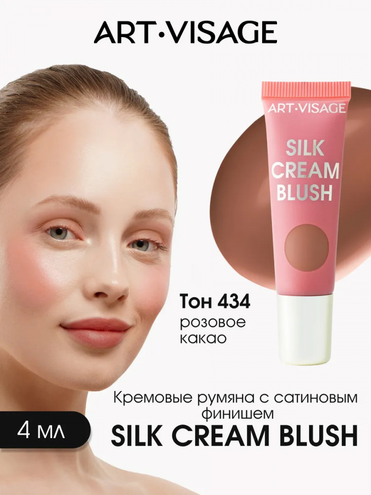 Art-Visage Румяна для лица кремовые с сатиновым финишем «Silk Cream Blush», оттенок 434 Розовое какао