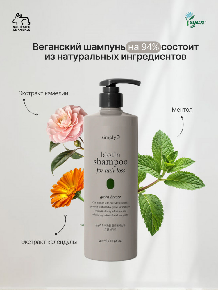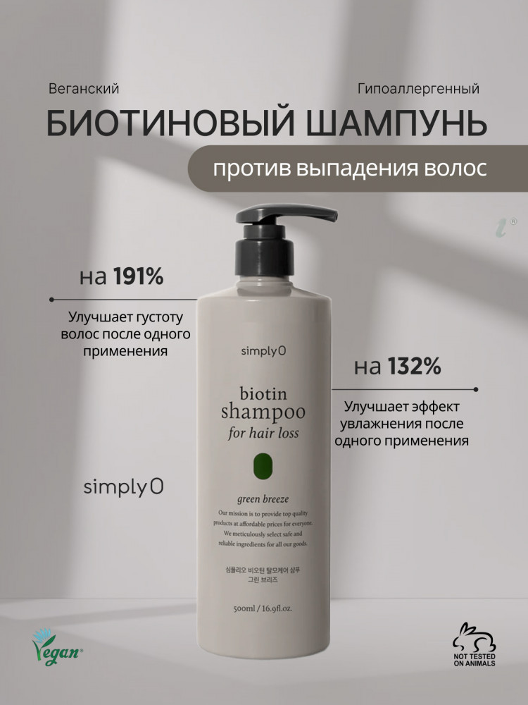 SimplyO Гипоаллергенный шампунь от выпадения волос SimplyO Biotin Shampoo for Hair Loss «Green Breeze»
