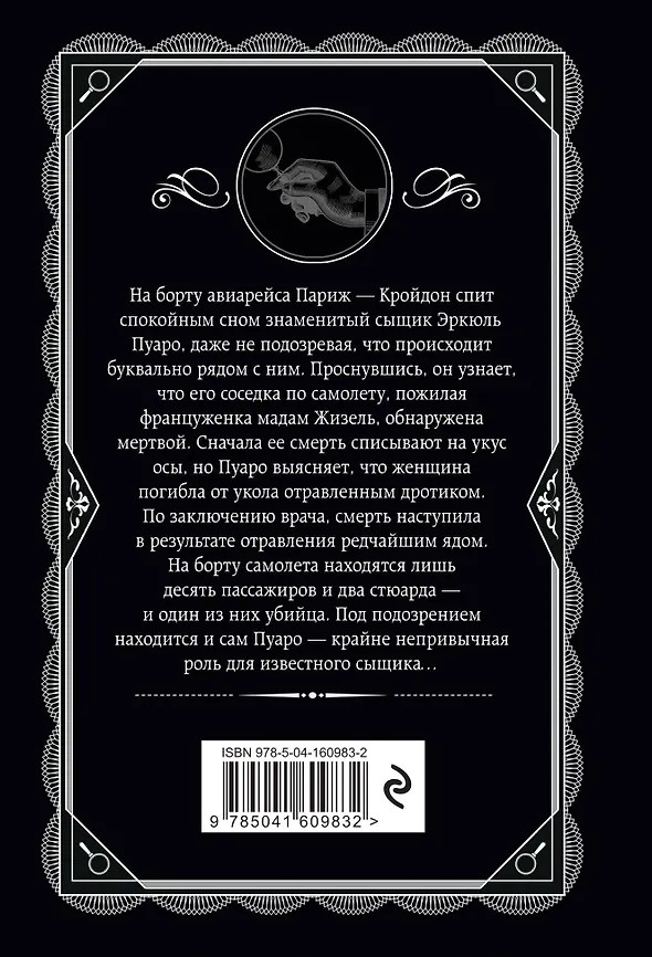 На борту авиарейса Париж — Кройдон спит спокойным сном знаменитый сыщик Эркюль Пуаро, даже не подозревая, что происходит буквально рядом с ним. Проснувшись, он узнает, что его соседка по самолету, пожилая француженка мадам Жизель, обнаружена мертвой. Сначала ее смерть списывают на укус осы, но Пуаро выясняет, что женщина погибла от укола отравленным дротиком. По заключению врача, смерть наступила в результате отравления редчайшим ядом. На борту самолета находятся лишь десять пассажиров и два стюарда — и один из них убийца. Под подозрением находится и сам Пуаро — крайне непривычная роль для известного сыщика... |