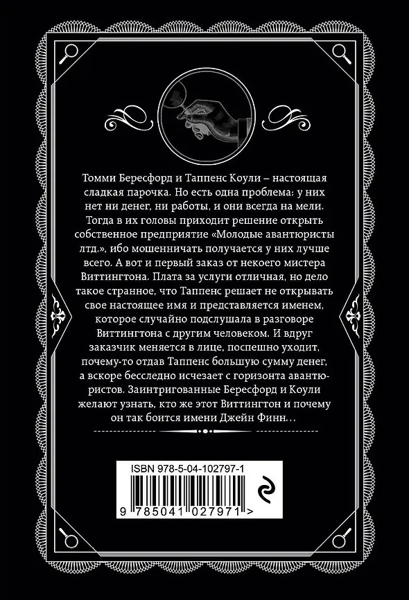 Томми Бересфорд и Таппенс Коули — настоящая сладкая парочка. Но есть одна проблема: у них нет ни денег, ни работы, и они всегда на мели. Тогда в их головы приходит решение открыть собственное предприятие «Молодые авантюристы, лтд.», ибо мошенничать получается у них лучше всего. А вот и первый заказ от некоего мистера Виттингтона. Плата за услуги отличная, но дело такое странное, что Таппенс решает не открывать свое настоящее имя и представляется именем, которое случайно подслушала в разговоре Виттингтона с другим человеком. И вдруг заказчик меняется в лице, поспешно уходит, почему-то отдав Таппенс большую сумму денег, а вскоре бесследно исчезает с горизонта авантюристов. Заинтригованные Бересфорд и Коули желают узнать, кто же этот Виттингтон и почему он так боится имени Джейн Финн...