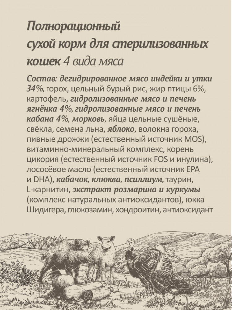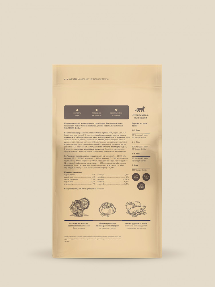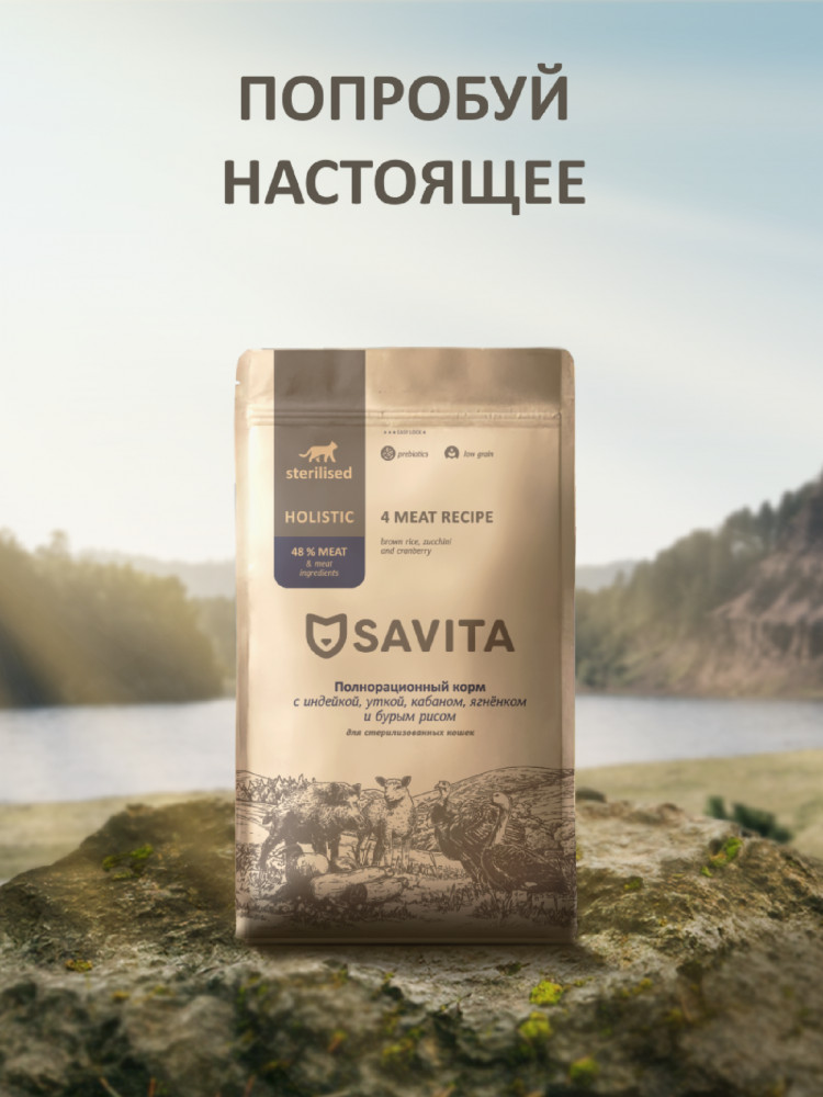 Savita Сухой корм для стерилизованных кошек 4 вида мяса с бурым рисом «Skin&Coat Care»