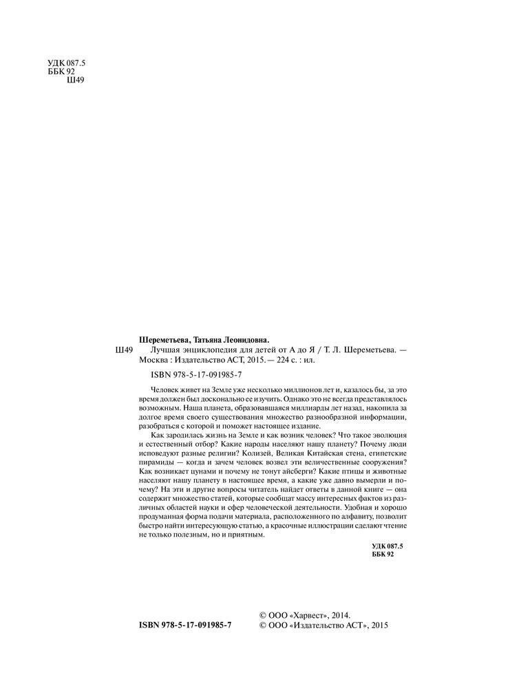| Лучшая энциклопедия для детей от А до Я Татьяна Леонидовна Шереметьева