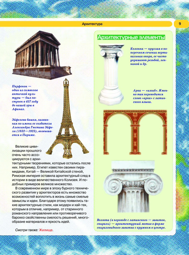 Как зародилась жизнь на Земле и как возник человек? Что такое эволюция и естественный отбор? Какие народы населяют нашу планету? Почему люди исповедуют разные религии? Колизей, Великая Китайская стена, египетские пирамиды — когда и зачем человек возвел эти величественные сооружения? Как возникает цунами и почему не тонут айсберги? Какие птицы и животные населяют нашу планету в настоящее время, а какие уже давно вымерли и почему? На эти и другие вопросы читатель найдет ответы в данной книге — она содержит множество статей, которые сообщат массу интересных фактов из различных областей науки и сфер человеческой деятельности. Удобная и хорошо продуманная форма подачи материала, расположенного по алфавиту, позволит быстро найти интересующую статью, а красочные иллюстрации сделают чтение не только полезным, но и приятным. |