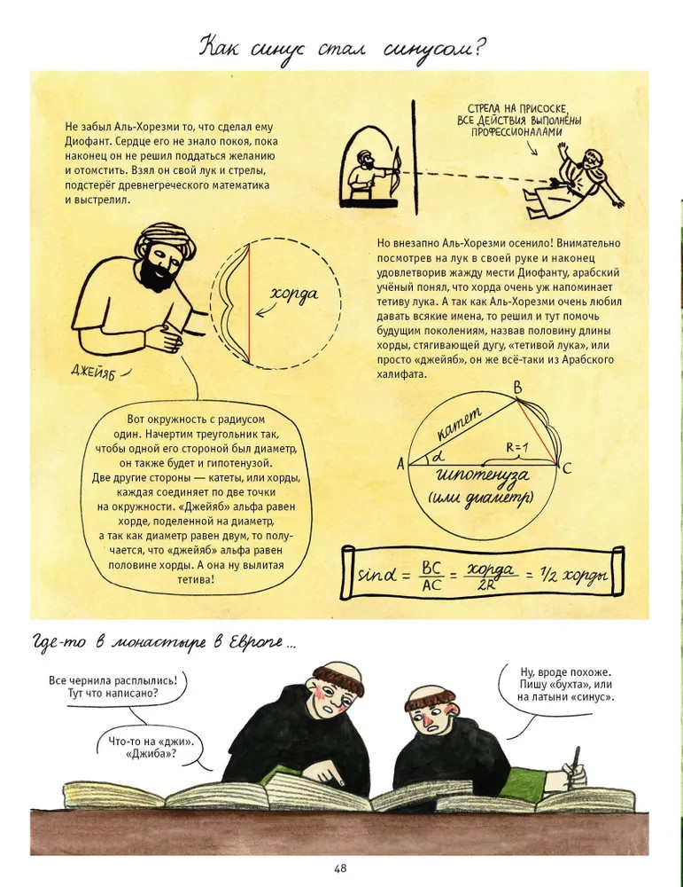 💳 Оплатить за товар можно при получении 🇰🇿 Есть бесплатная доставка по Казахстану от 1 дня 🎁 Копите бонусы с каждой покупки Серия: Комиксы Когда и для чего человек начал считать предметы вокруг себя? А наблюдать за звёздами и составлять календари? Зачем ему понадобились дроби и длина окружности? Кому в голову пришло извлекать корень из двух или вычислять мгновенную скорость? И вообще, кто, когда и почему начал заниматься математикой? В этой книге увлекательно и остроумно рассказывается история этой науки — от создания цифр до изобретения мнимых чисел, от построения прямоугольных треугольников до искривлённых пространств Лобачевского и Римана, от наблюдения за созвездиями до открытий Ньютона и Эйнштейна. И всё это в форме смешных, а порой невероятных историй, где математики разных эпох и разных стран спорят, экспериментируют, шутят и даже устраивают пикники. От Египта до Китая, от Индии до Греции — история математики соединяет континенты и тысячелетия. Эта книга станет прекрасным дополнением к школьному курсу математики и информатики. |