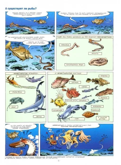 💳 Оплатить за товар можно при получении 🇰🇿 Есть бесплатная доставка по Казахстану от 1 дня 🎁 Копите бонусы с каждой покупки Серия: Комиксы В пятом томе французской серии «Морские животные в комиксах» авторы уделили основное внимание проблемам охраны морской среды и рационального природопользования. Читатели узнают, насколько важно регулировать промышленный вылов рыбы, чтобы не допустить резкого сокращения численности, а то и вымирания многих видов; в чём преимущества ремесленного вылова перед промышленным, что такое «прилов» (иными словами, неумышленная добыча) и какой урон наносит он подводным экосистемам; к чему приводит загрязнение рек, морей и океанов пластиком и другими отходами; почему во всём мире растёт численность медуз и как это влияет на естественный природный баланс... Выросший интерес к вопросам экологии и охраны окружающей среды связан с более глубоким участием специалистов в работе над томом: в частности, к сплочённой команде авторов в составе сценариста Кристофа Казнова, художника Житери и колористов Александра Амурика и Мирабель добавился учёный-океанолог Мишель Иньетт — впрочем, хорошо нам знакомый по благодарностям из предыдущих томов! Однако те, кто успел полюбить серию не только за научную достоверность и тщательный подбор информации, но и за искромётный юмор, также не останутся разочарованы; чего стоят истории про дельфина-кулинара или краба-фантома, хитрого рачка Эвридику Прекрасную или Мина-долгожителя, непробиваемого хитона или незабываемого кальмара-светлячка... И — вишенка на торте! — ответ на вопрос, который звучит, прямо скажем, несколько неожиданно: а существуют ли вообще рыбы? У кого как, а у миноги на этот счёт своё мнение... |