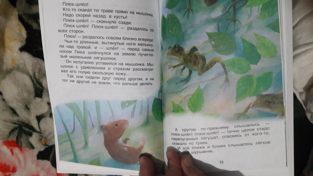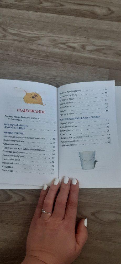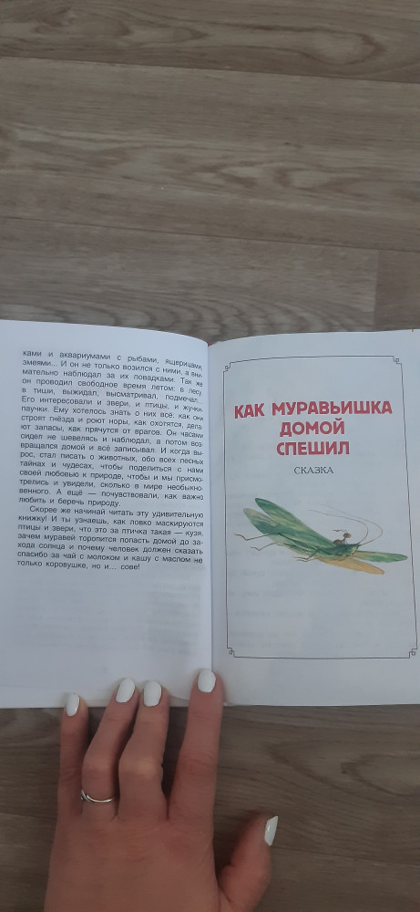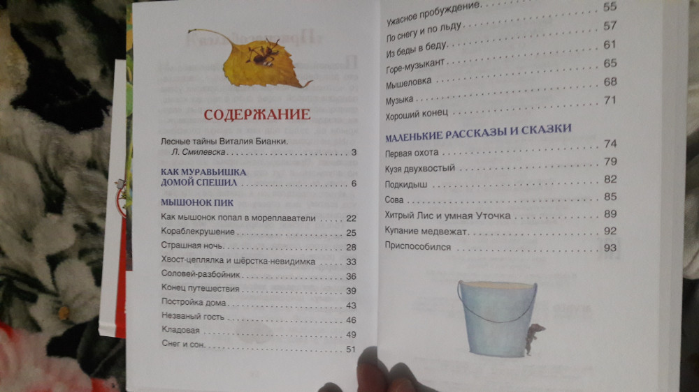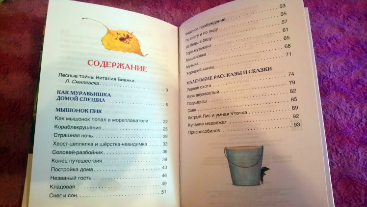 Книга хорошего качества. Твердый переплет, белые плотные листы, удобный шрифт, яркие картинки. Картинки небольшие, но на каждом развороте и очень красивые. Очень понравилась история про Мышонка Пик (читали впервые)! Ну и конечно наша любимая сказка "Как муравьишка домой спешил".