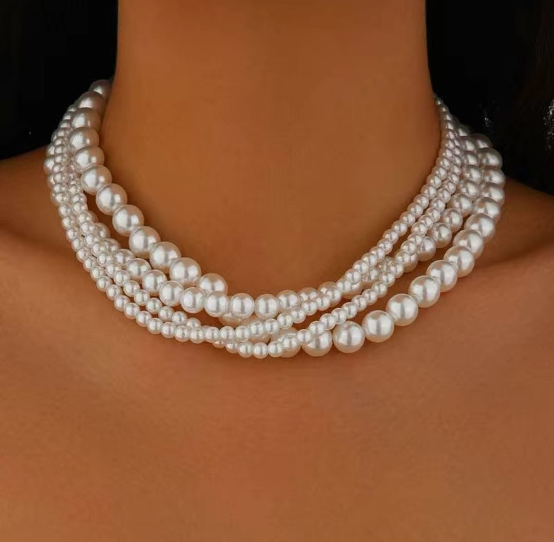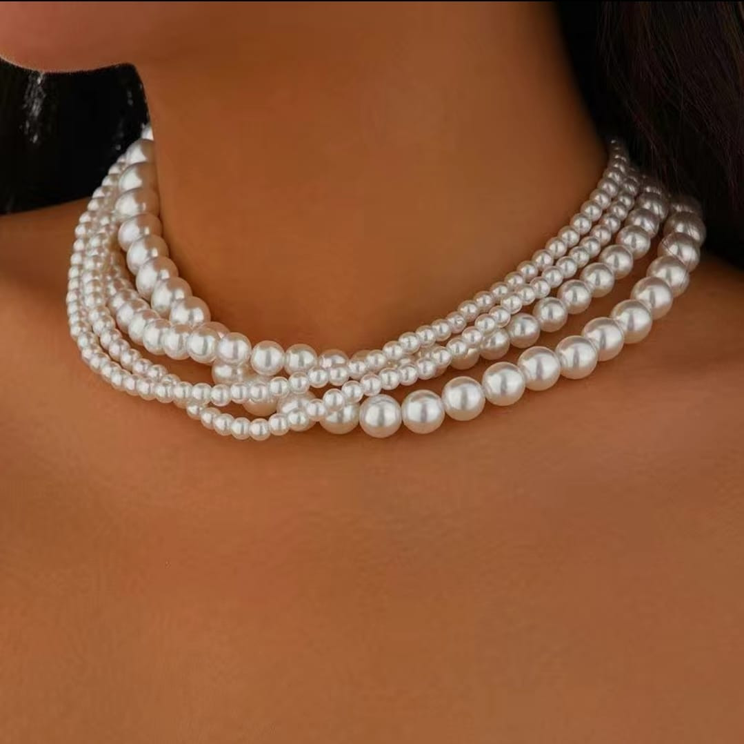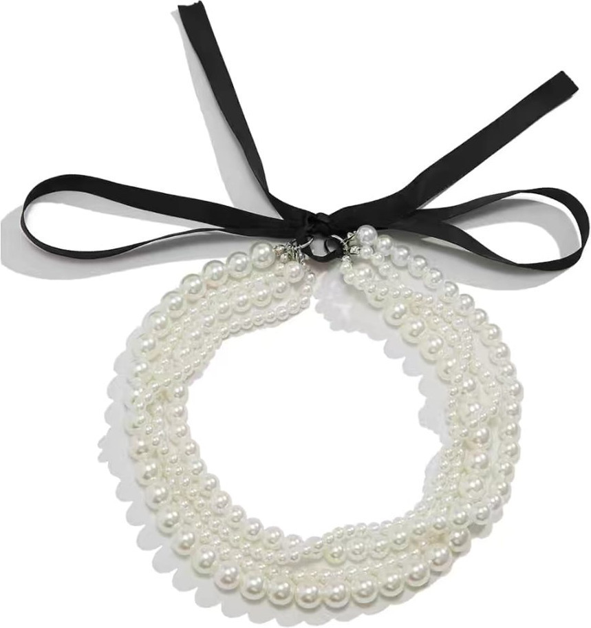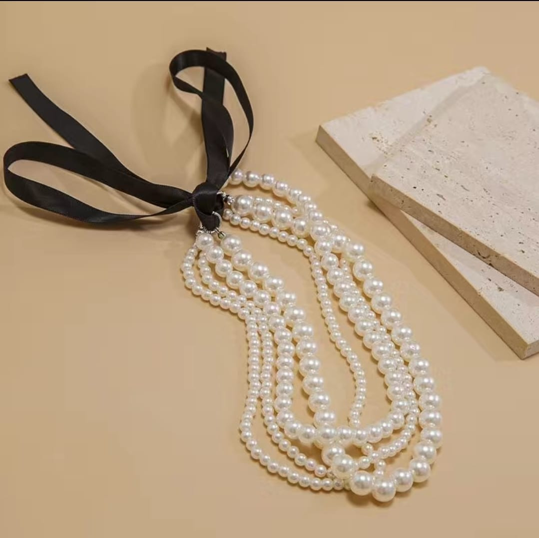 Жемчужное колье-чокер с атласной лентой