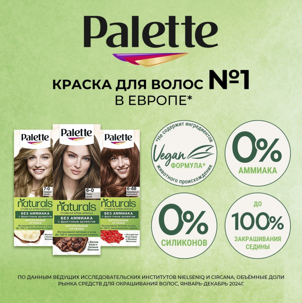 Краска для волос, оттенок 6-0 Темно-русый | Naturals | Palette