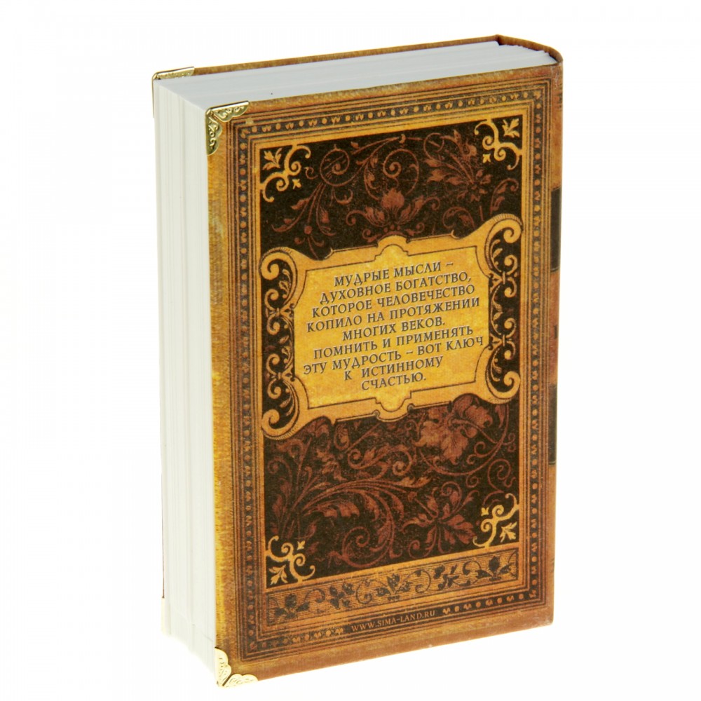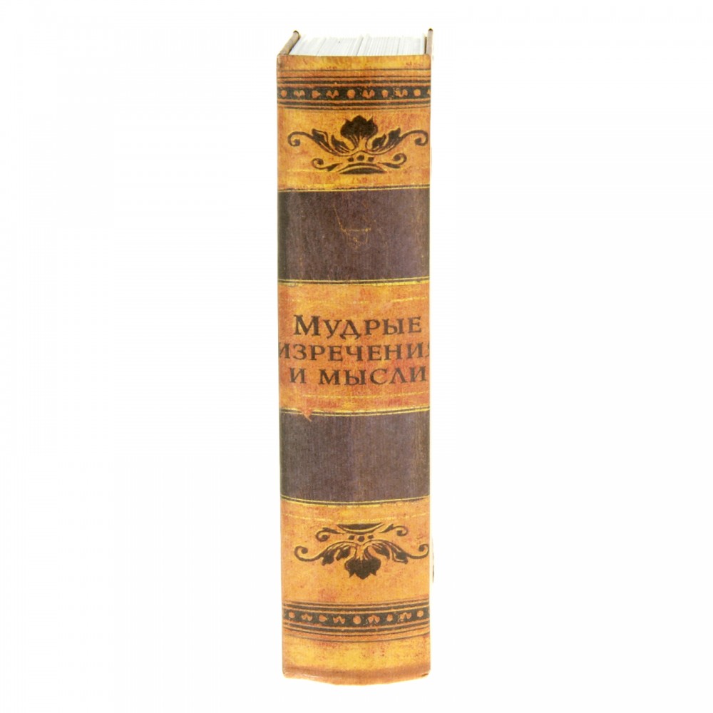 Под яркой обложкой с эксклюзивным дизайном находится полость для ваших вещей, запирающаяся на ключ. Отличительная особенность сейф-книги «Мудрые изречения и мысли» в том, что «обрез» выполнен как полная имитация бумажных страниц. Изделие сложно отличить от настоящей книги, особенно на полке, среди других изданий. Этот оригинальный аксессуар станет вашим любимым помощником в вопросах защиты финансов от посторонних глаз.