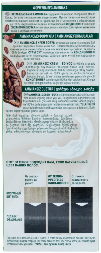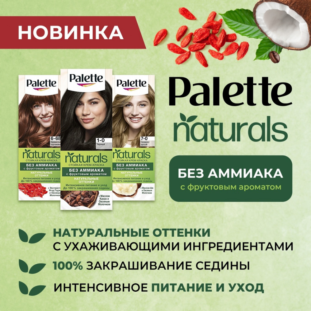 Откройте для себя стойкую крем-краску Палетт Naturia без аммиака! Окрашивающий крем без аммиака содержит специально подобранное масло Ши, богатое питательными веществами. Мультитональные окрашивающие пигменты позволяют получить естественный многогранный цвет, сияющие русые оттенки и до 100% закрашивания седины. Ухаживающий кондиционер с овсяным молочком питает волосы изнутри. Для ухоженных волос и естественных живых оттенков!