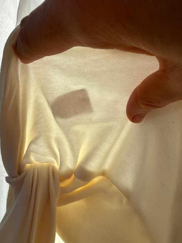 Между двумя слоями ткани какая-то наклейка, убрать которую можно только распоров слои…