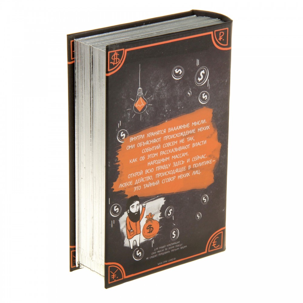 Сейф-книга «Теория большого заговора»В данный момент этот товар отсутствует в продаже. Возможно, у нас найдется аналогичный или похожий товар здесь. «Хочешь спрятать что-нибудь – положи это на видное место», – гласит народная мудрость. Именно поэтому этот небольшой сейф замаскирован под… самую настоящую книгу «Теория большого заговора»! Храните в нем ваш семейный бюджет, важные бумаги, украшения, записки с интересными наблюдениями и новаторскими идеями. Положите их в шкатулку и поставьте на книжную полку или стеллаж и убедитесь в оригинальности этого тайничка: он будет находиться на видном месте и при этом не привлечет к себе внимания. |