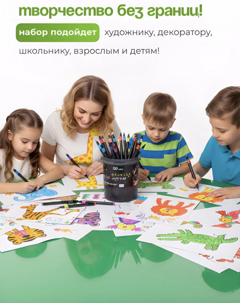 💳 Оплатить за товар можно при получении 🇰🇿 Есть бесплатная доставка по Казахстану от 1 дня 🎁 Копите бонусы с каждой покупки Набор акриловых маркеров из 60 ярких цветов для рисования, декора и творчества. Удобный пластиковый тубус с ручкой обеспечивает компактное хранение и лёгкую переноску. Подходит для детей и взрослых. Отличный подарок. Рисунок наклейка на тубусе часто меняется производителем . |