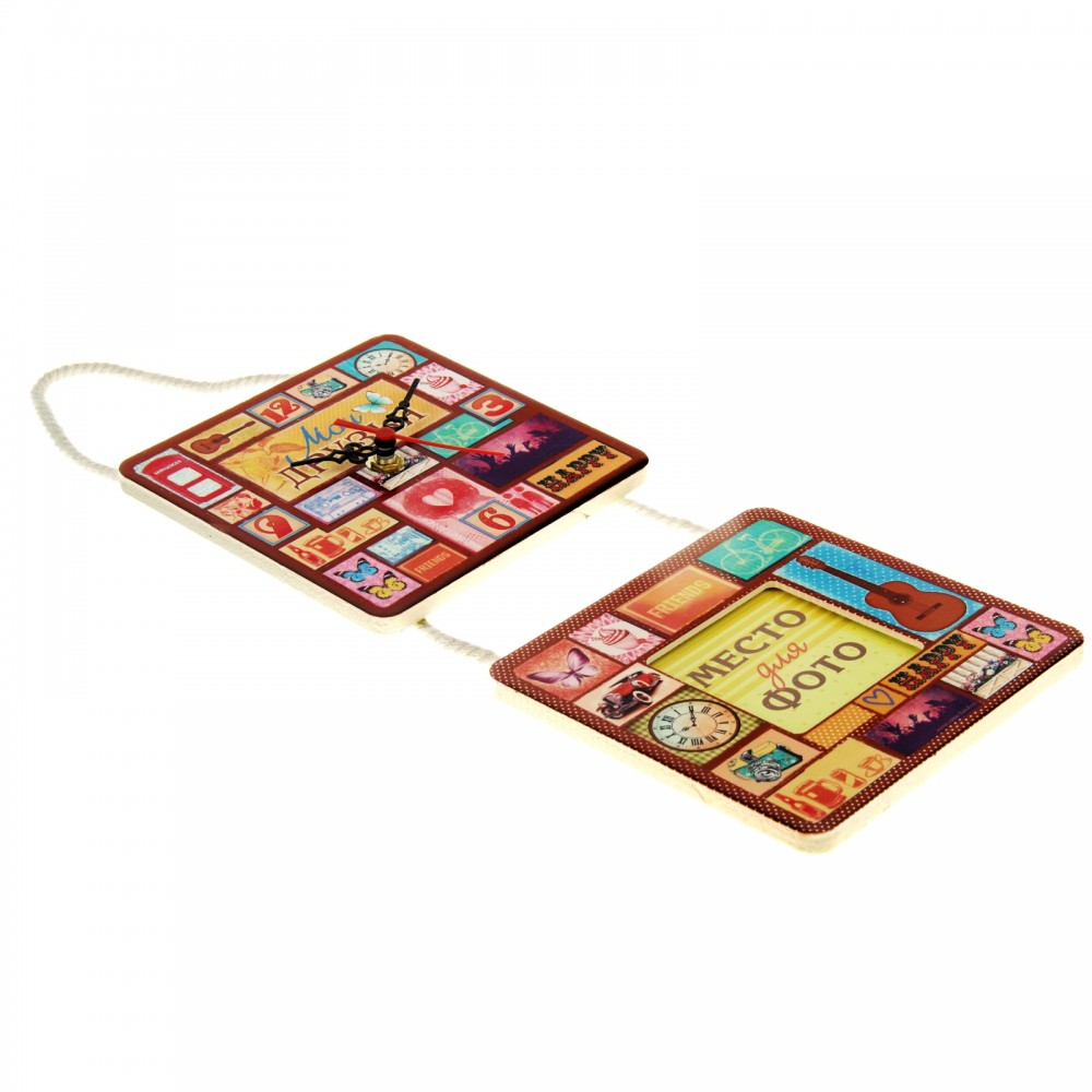 Фоторамка действительно из дерева, покрытие рисунка не такое яркое как на картинке. Часы работают. Рамка для фотографии очень маленькая.