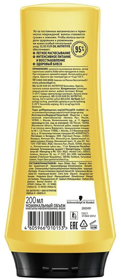 Gliss Kur Бальзам питание и блеск для поврежденных волос
