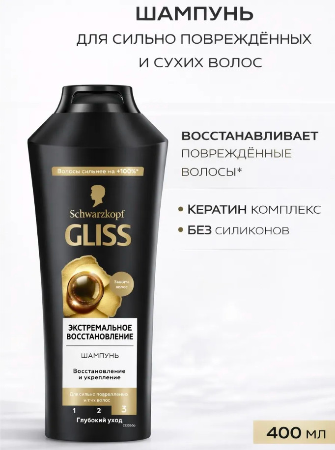 Gliss Шампунь для сильно поврежденных и сухих волос «Экстремальное восстановление»