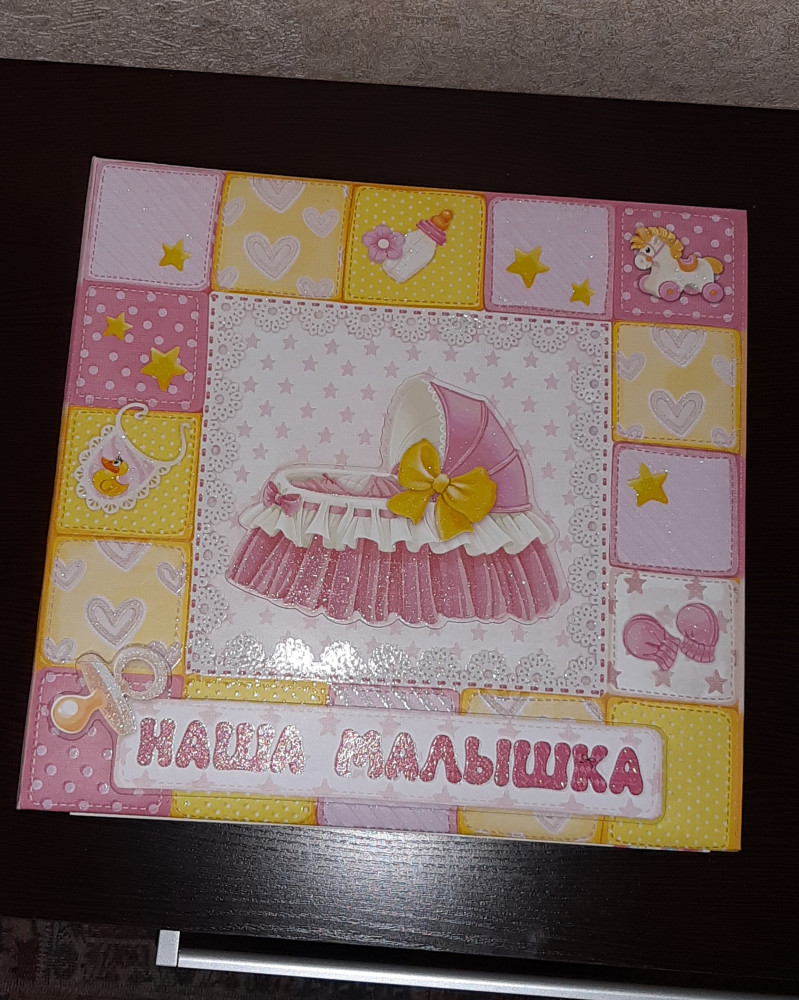 Замечательный альбом. Действительно большой, как было уже сказано в предыдущем отзыве, но меня размер устроил, так как у меня и свадебный альбом такого же формата, и старшей дочери приобрела подобный альбом. Также понравилось, что можно заполнить и оформить на свое усмотрение, для чего были пробретены дополнительно наклейки, здесь же на Flip.kz.