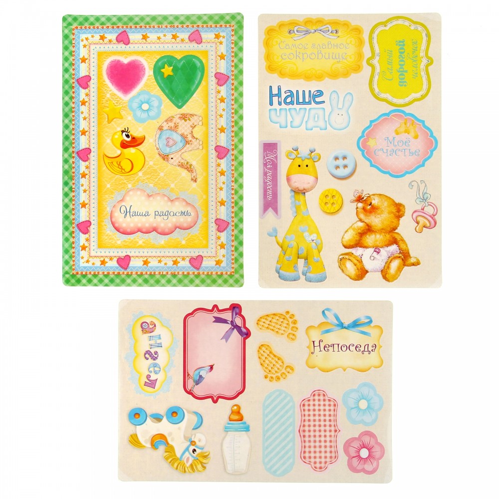 Яркий и удобный альбомчик. Легко взять с собой. Очень отличный подарок для мамы и ее ребенка. Благодаря наклейкам можно сделать прекрасную композицию из фотографий