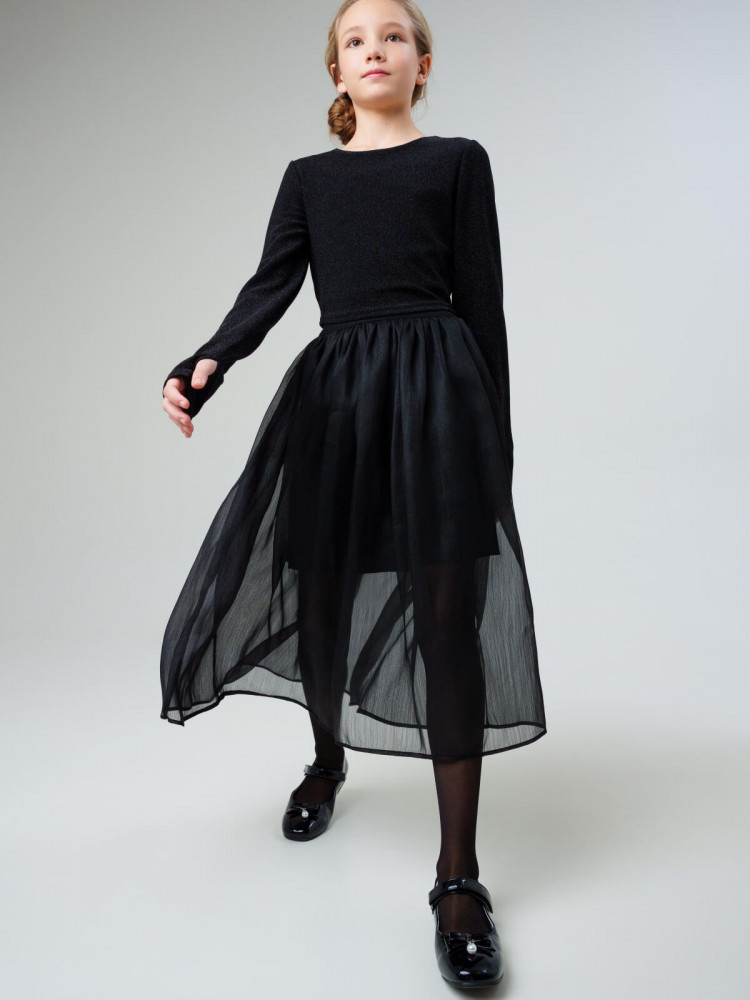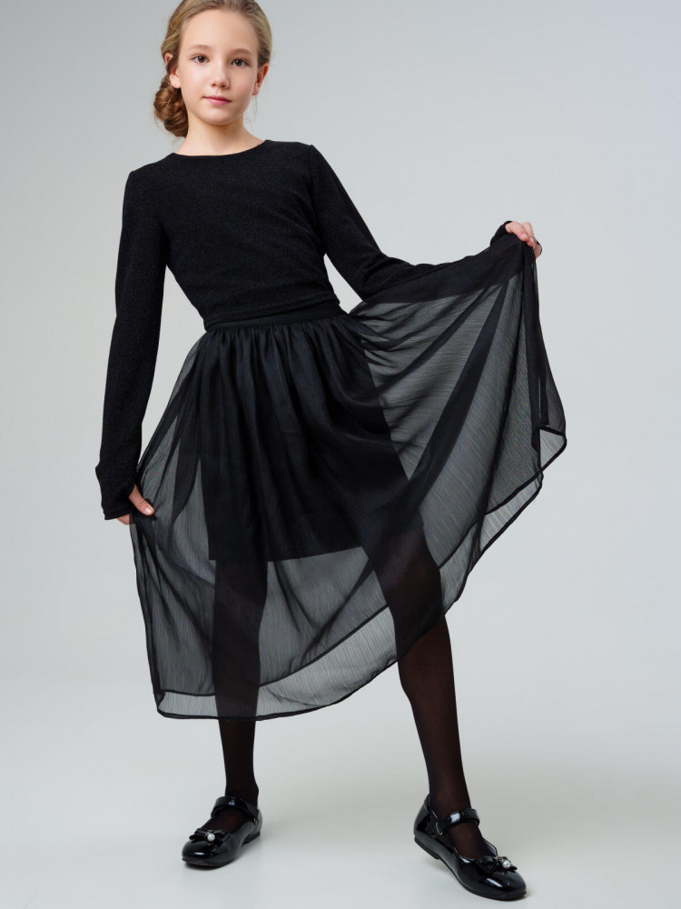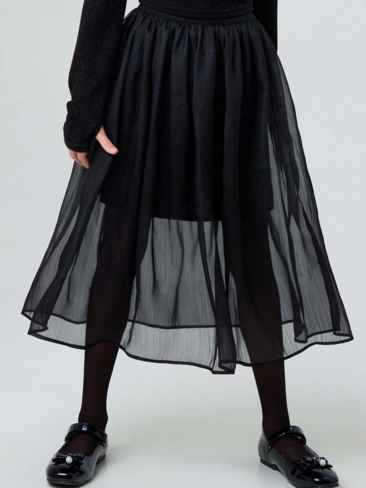 Стильная нарядная юбка для девочки подростка от PlayToday — эффектная модель с пышной юбкой из органзы.