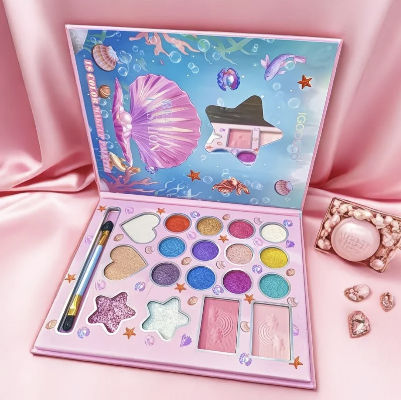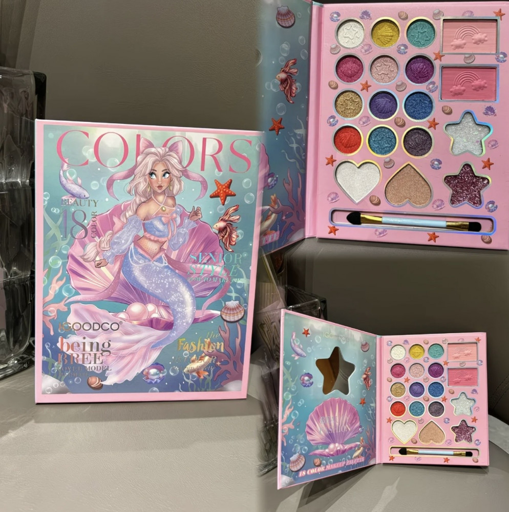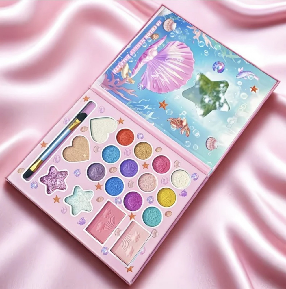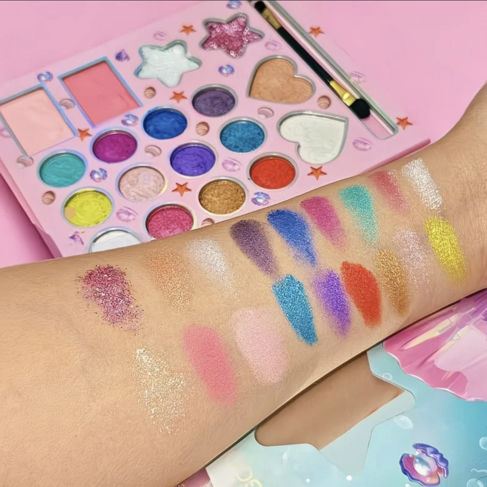 Детская палетка теней для век с блёстками и кистью «Русалка»