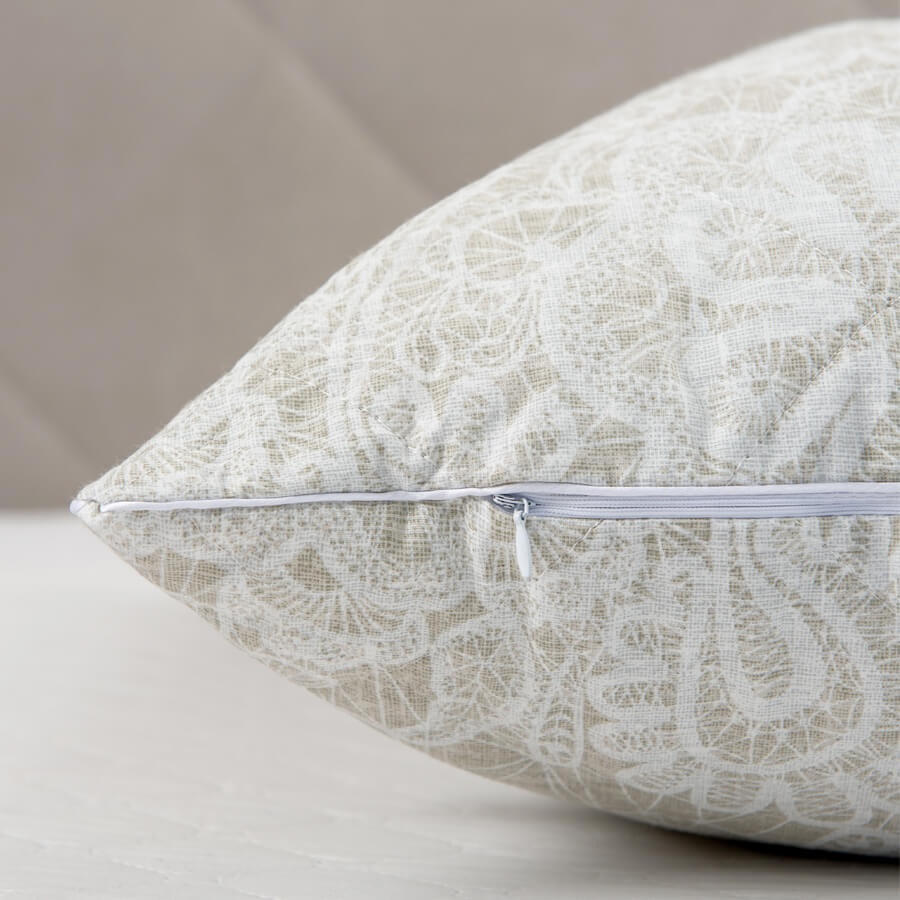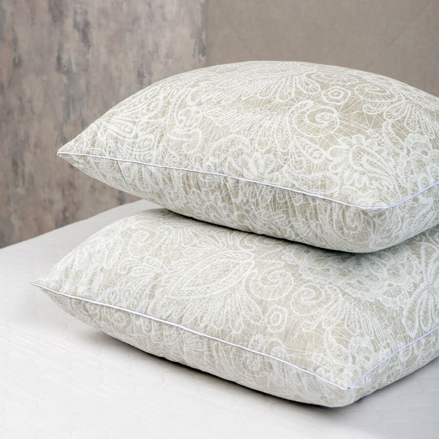 Стеганая подушка — это подушка, имеющая сложную «конструкцию», состоящую из двух камер. Первая камера изготовлена из поплина, простеганного с синтепоном, что позволяет подушке не терять форму и добавляет упругости. Поплин — это натуральная хлопковая ткань без примеси синтетики обладающая высокой прочностью, воздухопроницаемостью и гипоаллергенными свойствами. Приятным эстетическим дополнением станет атласный кант. Вшитая потайная молния даст возможность снимать верхний чехол и стирать привычным для Вас способом, при этом наполнитель останется во второй камере и никак не пострадает при стирке. Вам не придется относить изделие в химчистку что бы сохранить его первоначальные свойства. Вторая камера выполнена из спанбонда, в нее помещается наполнитель и надежно зашивается в ней. Наполнитель не рассыпится при использовании и уходе. При желании можно регулировать количество наполнителя увеличивая или уменьшая плотность набивки. Состав наполнителя — силиконизированное волокно изготовленное по современным технологиям с учетом требований к комфортному сну и удобству. Не комкуется, не сбивается, остается пышным и воздушным на долгое время. Данная модель — это отличный вариант для практичной современной хозяйки.