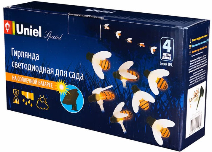 💳 Оплатить за товар можно при получении 🇰🇿 Есть бесплатная доставка по Казахстану от 1 дня 🎁 Копите бонусы с каждой покупки Садовая гирлянда на солнечной батарее «Пчелки» USL-S-127/PT4000 предназначена для декоративной подсветки сада — деревьев, беседок и композиций на участке. Комплект представляет собой общий направляющий провод с присоединенными к нему светильниками в виде пчел. Солнечная панель устанавливается в землю с помощью колышка (в комплекте). В гирлянде используются светодиоды (20 шт.). Два режима свечения: постоянное и мигание, цвет свечения — теплый белый. Срок службы — до 30000 часов. Корпус каждого светильника изготовлен из пластика, степень пылевлагозащиты IP44. Диапазон рабочих температур — от −20 до +35 °С. Подключение к электросети не требуется. Гирлянда оборудована кристаллической солнечной панелью. Выключатель расположен на батарейном блоке. Заряжается в светлое время суток. Емкость аккумуляторной батареи 400 мАч. |